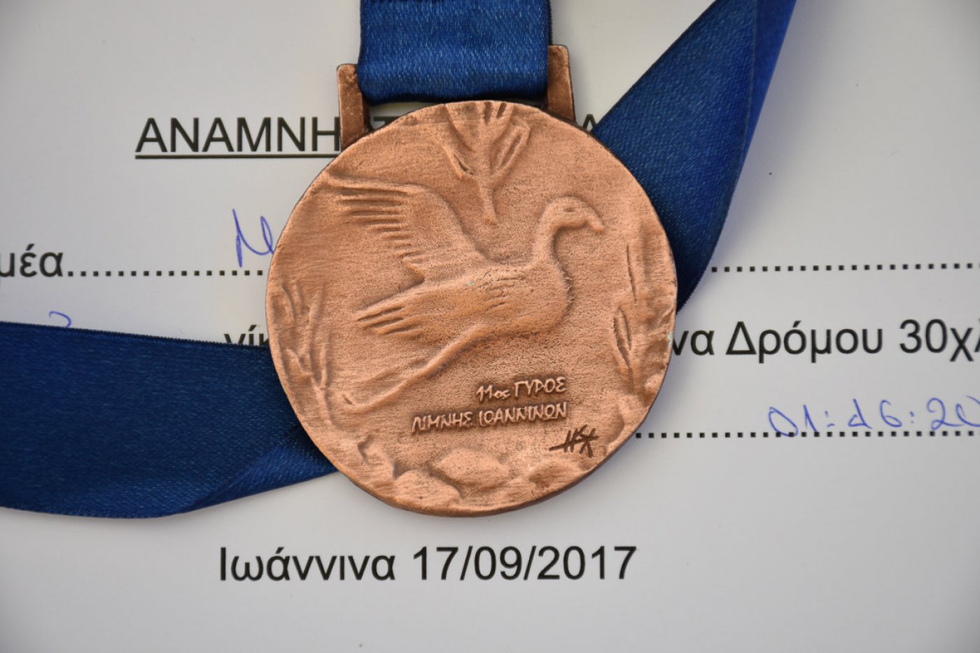 Η καλύτερη επιβράβευση ήταν για τους αθλητές που τερμάτισαν τον Γύρο Λίμνης Ιωαννίνων των 30 χλμ. και τους υπόλοιπους αγώνες του διημέρου, το συλλεκτικό μετάλλιο που φέτος φιλοτέχνησε ο καταξιωμένος γλύπτης Χρήστος Σκαλκώτος.