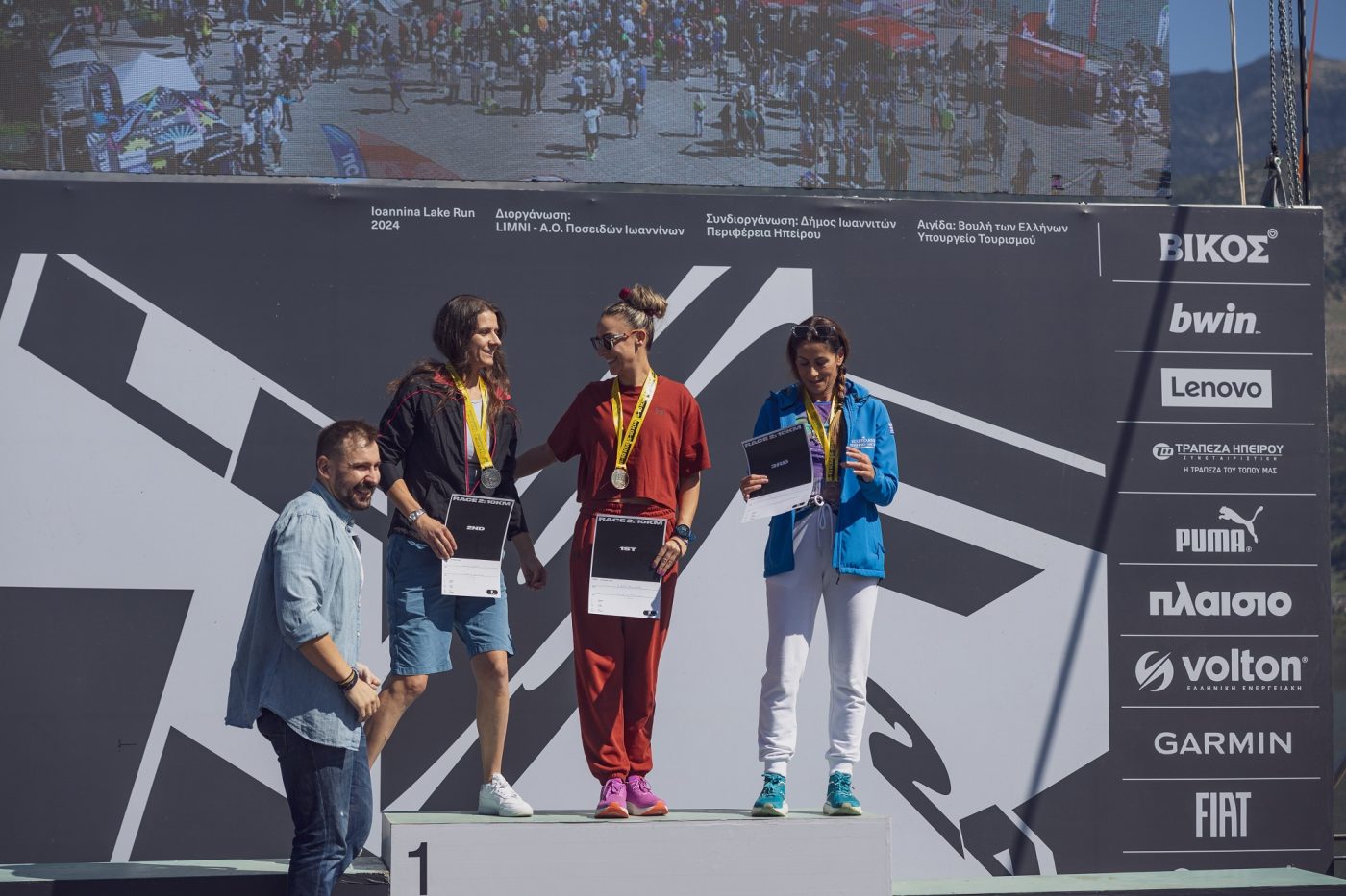Στιγμιότυπα από τις απονομές του αγώνα των 10 χλμ. του Ioannina Lake Run 2024.