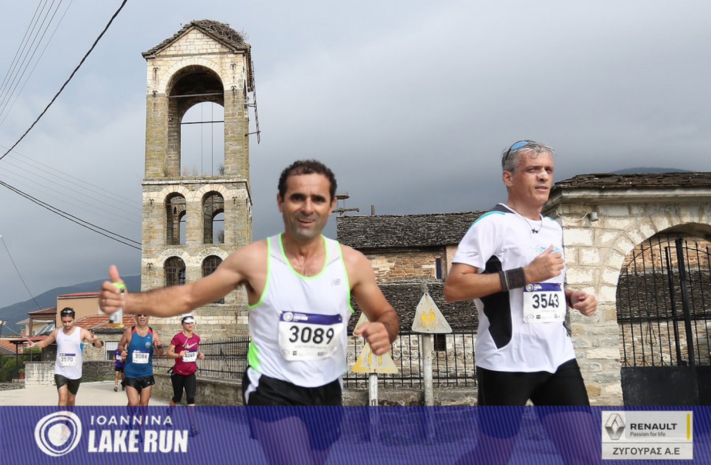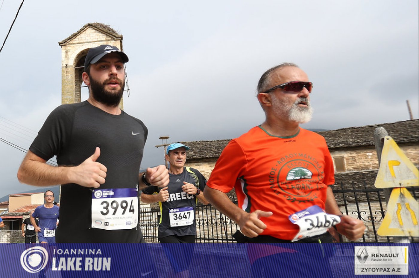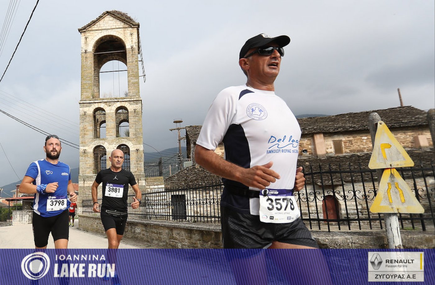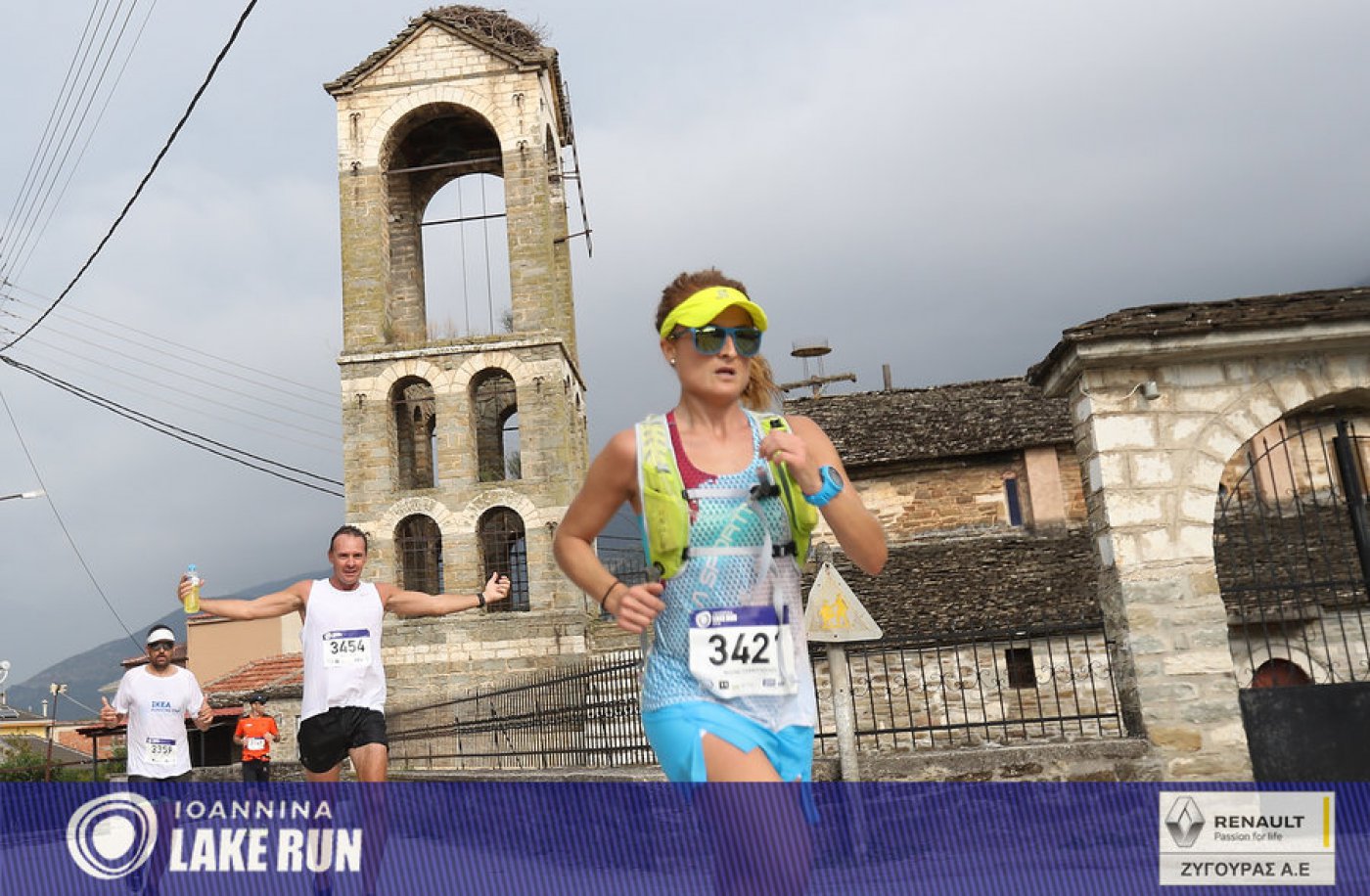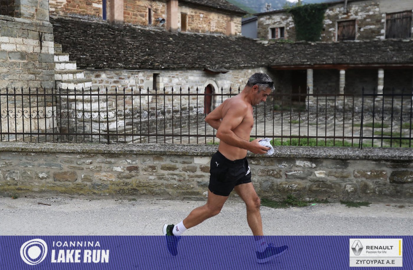 Το πέρασμα των δρομέων από τον παραλίμνιο οικισμό των Λογγάδων και το καμπαναριό της εκκλησίας της Κοίμησης της Θεοτόκου. Εικόνες από τη διαδρομή έξω από τα χωριά της Βασιλικής και της Κατσρίτσας έως την είσοδο στον παραλίμνιο πεζόδρομο-ποδηλατόδρομο.