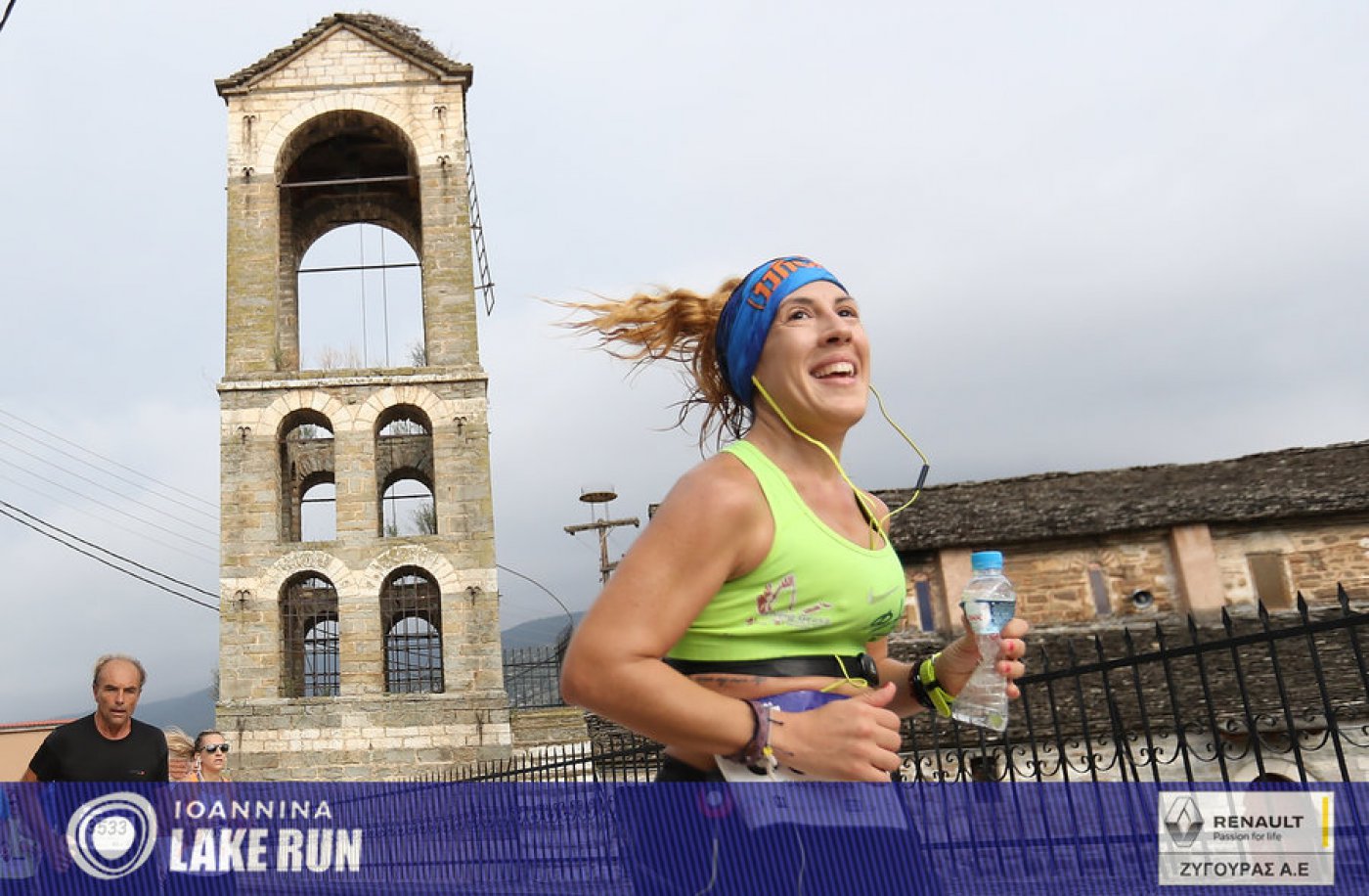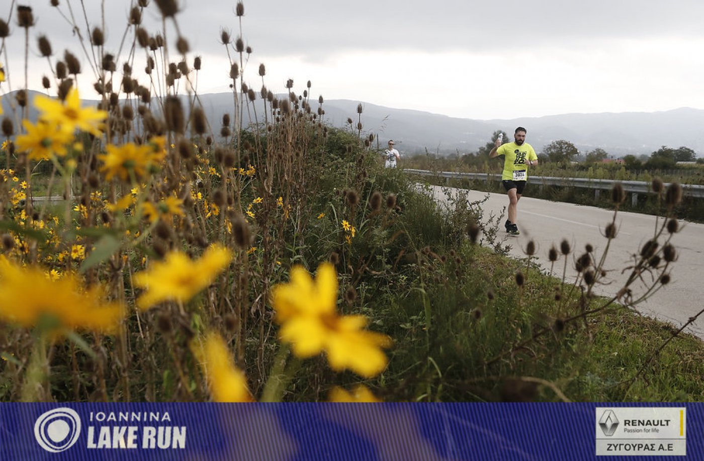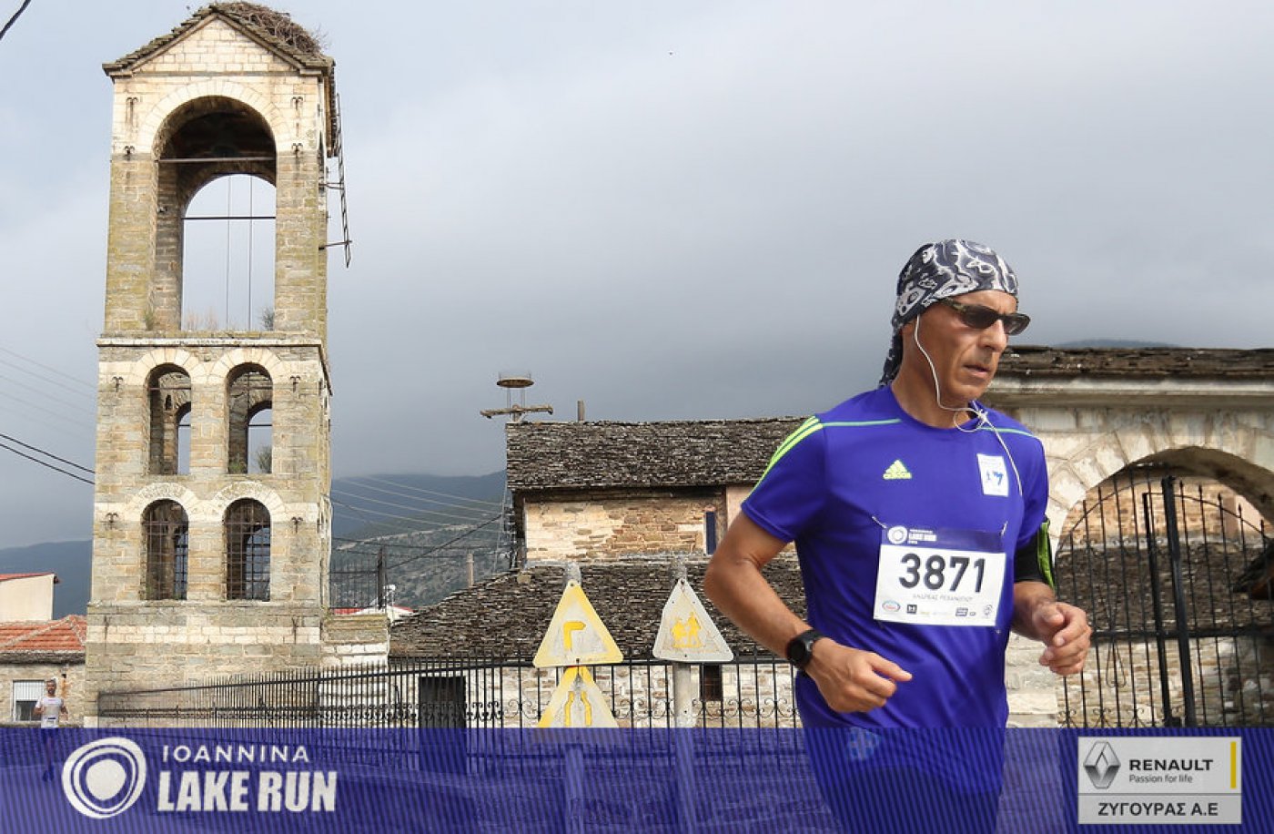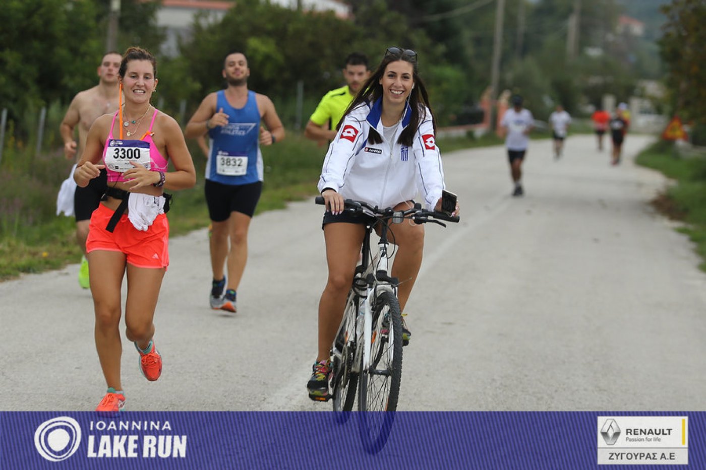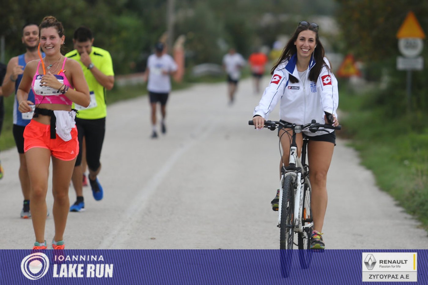 Το πέρασμα των δρομέων από τον παραλίμνιο οικισμό των Λογγάδων και το καμπαναριό της εκκλησίας της Κοίμησης της Θεοτόκου. Εικόνες από τη διαδρομή έξω από τα χωριά της Βασιλικής και της Κατσρίτσας έως την είσοδο στον παραλίμνιο πεζόδρομο-ποδηλατόδρομο.