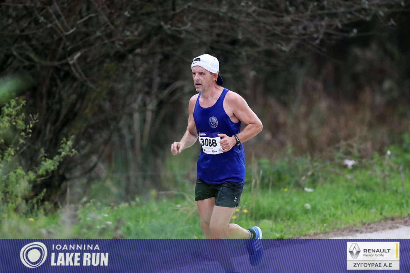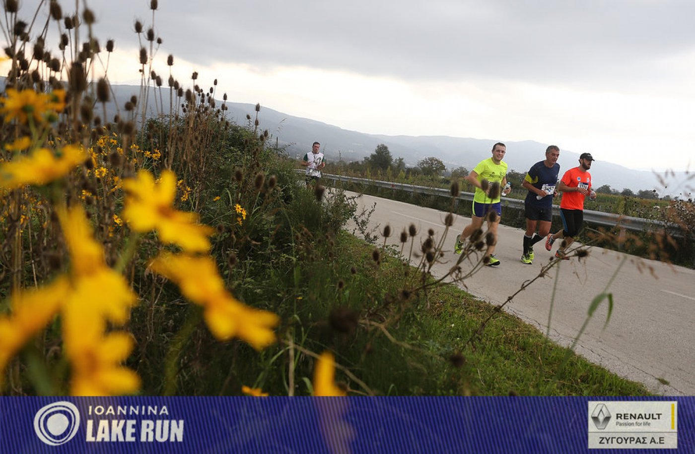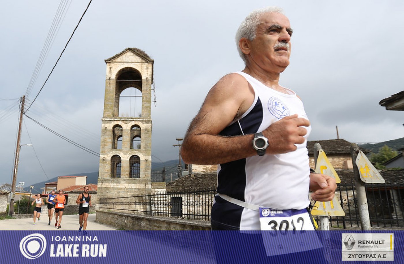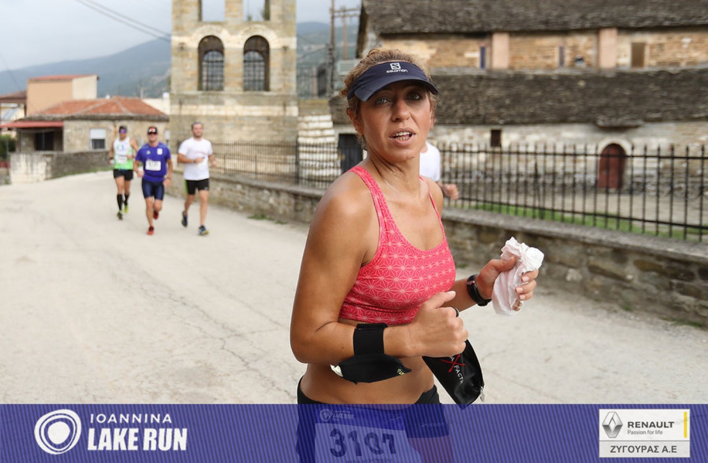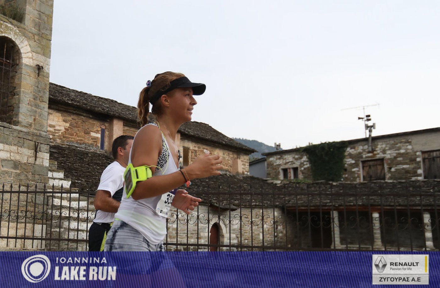 Το πέρασμα των δρομέων από τον παραλίμνιο οικισμό των Λογγάδων και το καμπαναριό της εκκλησίας της Κοίμησης της Θεοτόκου. Εικόνες από τη διαδρομή έξω από τα χωριά της Βασιλικής και της Κατσρίτσας έως την είσοδο στον παραλίμνιο πεζόδρομο-ποδηλατόδρομο.