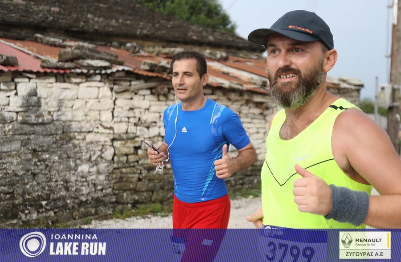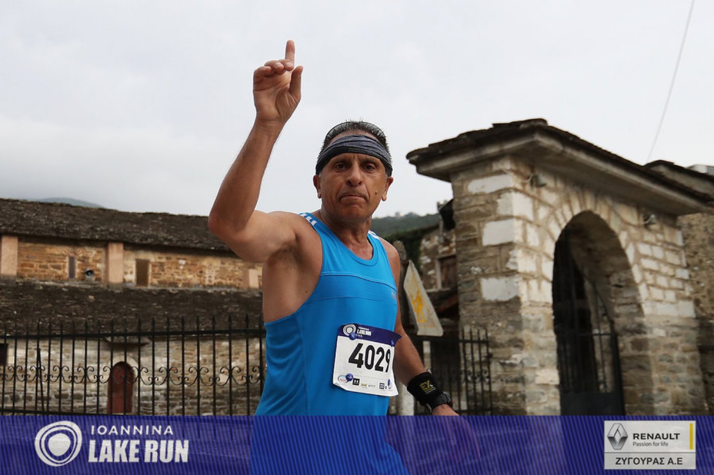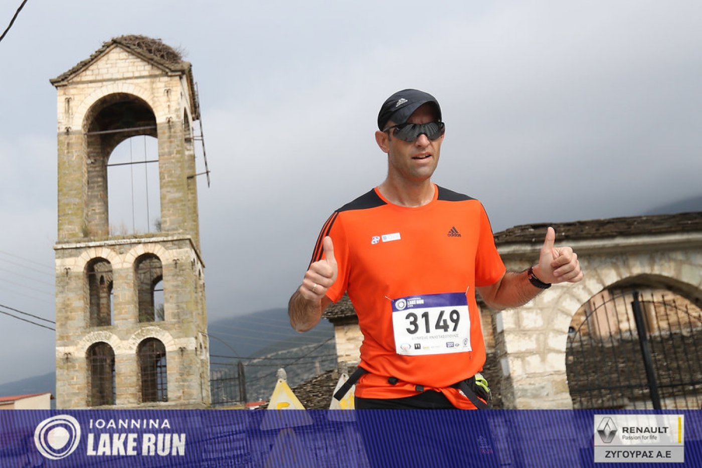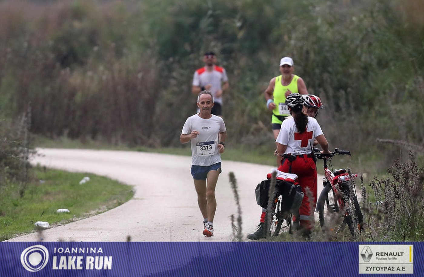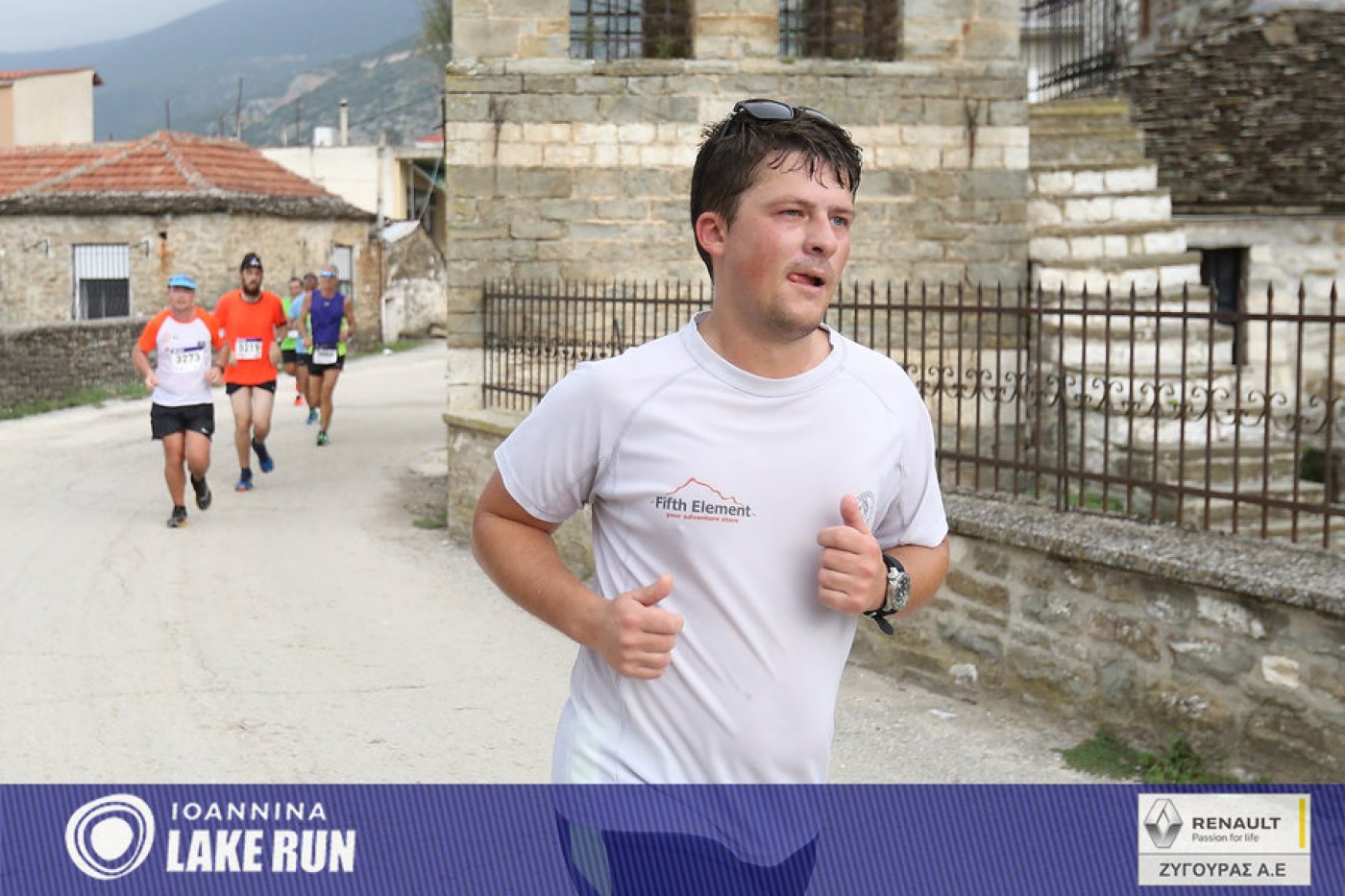 Το πέρασμα των δρομέων από τον παραλίμνιο οικισμό των Λογγάδων και το καμπαναριό της εκκλησίας της Κοίμησης της Θεοτόκου. Εικόνες από τη διαδρομή έξω από τα χωριά της Βασιλικής και της Κατσρίτσας έως την είσοδο στον παραλίμνιο πεζόδρομο-ποδηλατόδρομο.