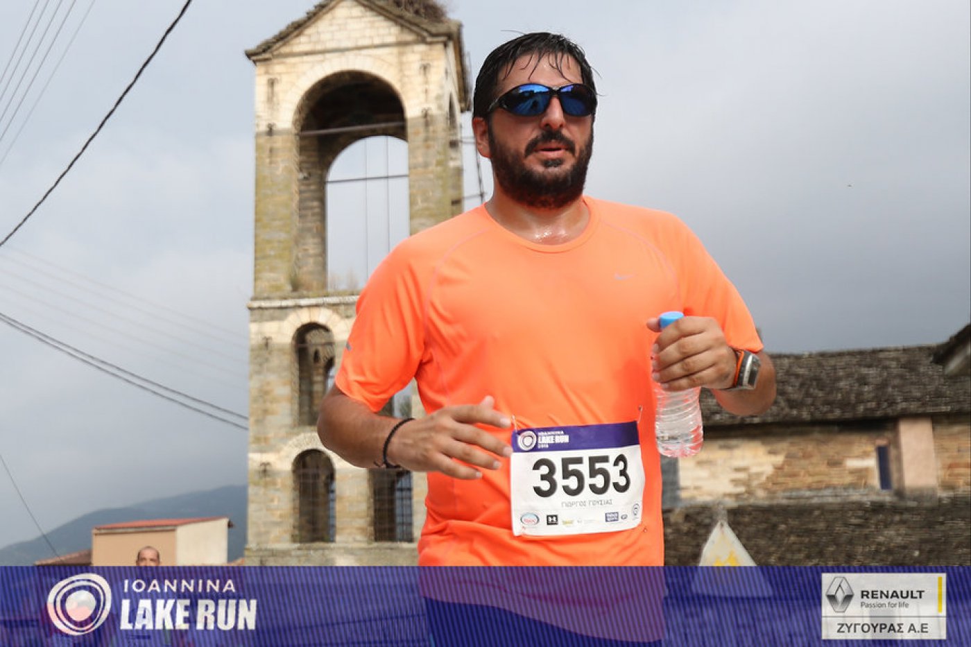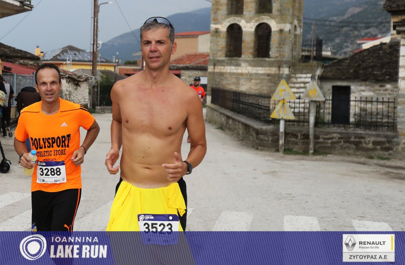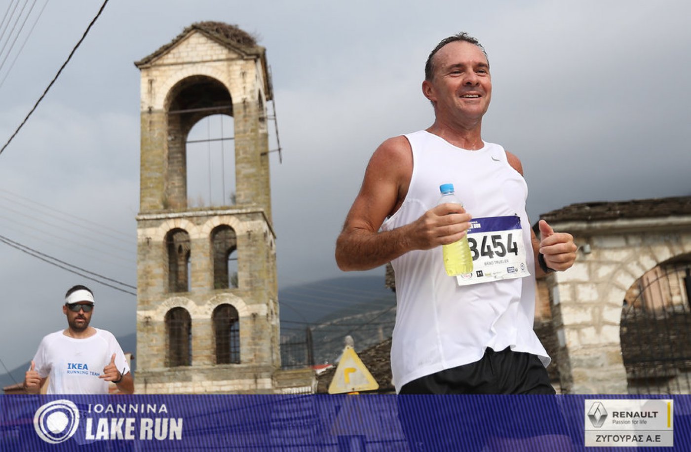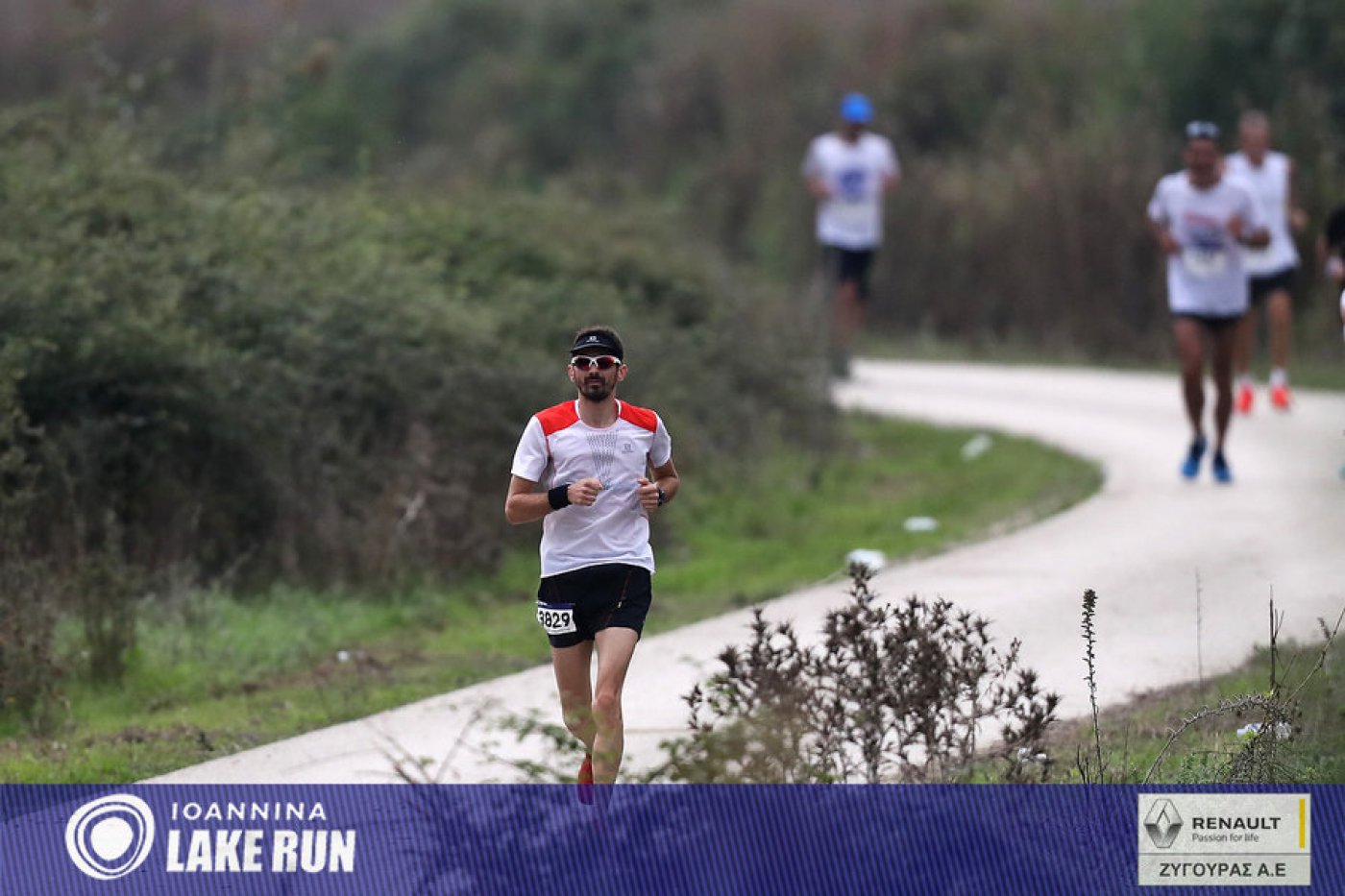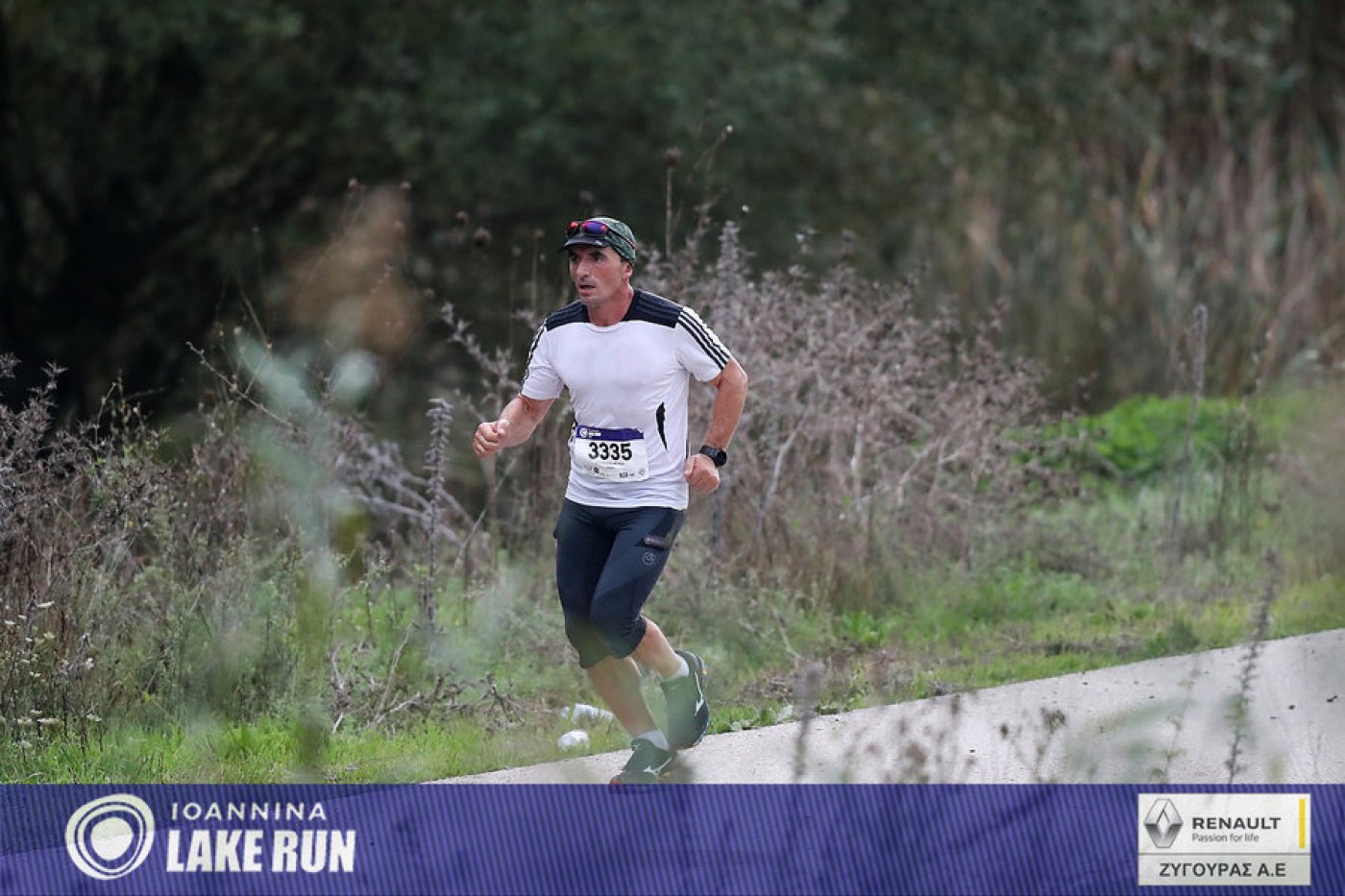 Το πέρασμα των δρομέων από τον παραλίμνιο οικισμό των Λογγάδων και το καμπαναριό της εκκλησίας της Κοίμησης της Θεοτόκου. Εικόνες από τη διαδρομή έξω από τα χωριά της Βασιλικής και της Κατσρίτσας έως την είσοδο στον παραλίμνιο πεζόδρομο-ποδηλατόδρομο.