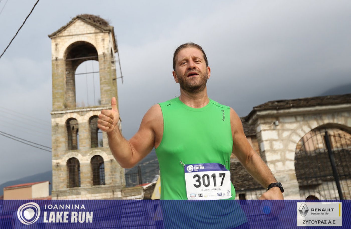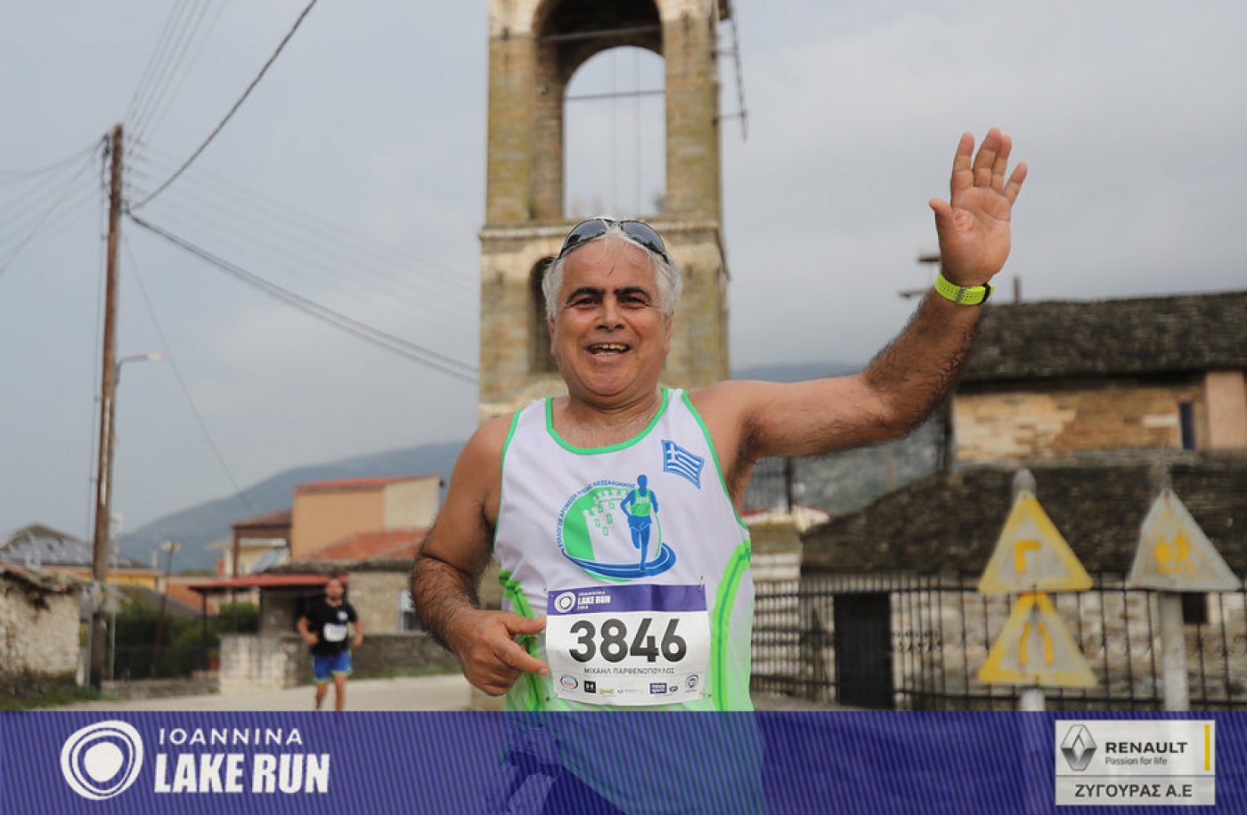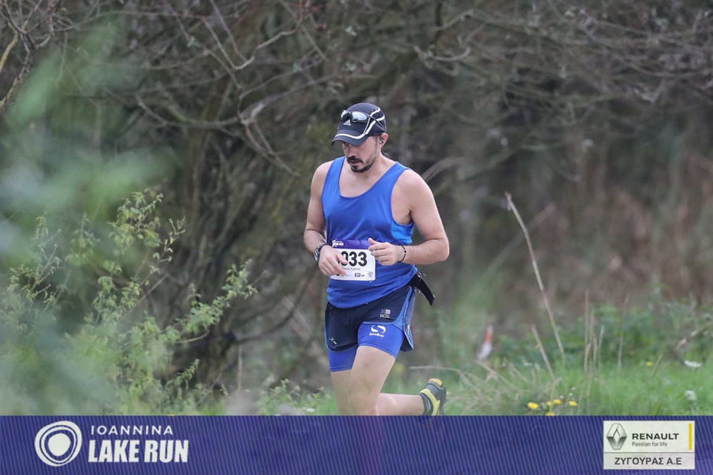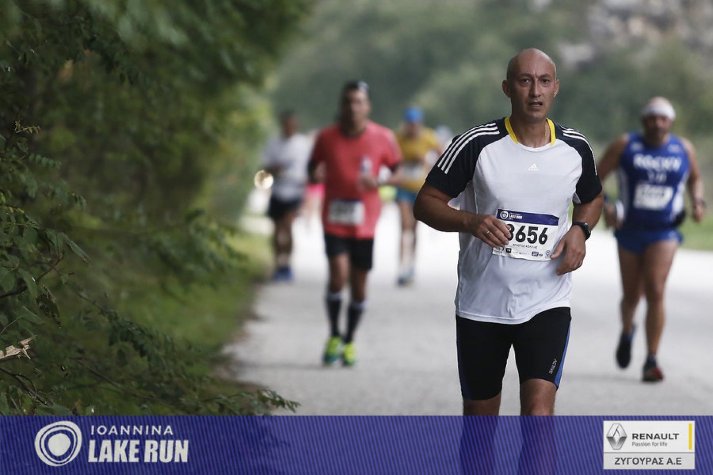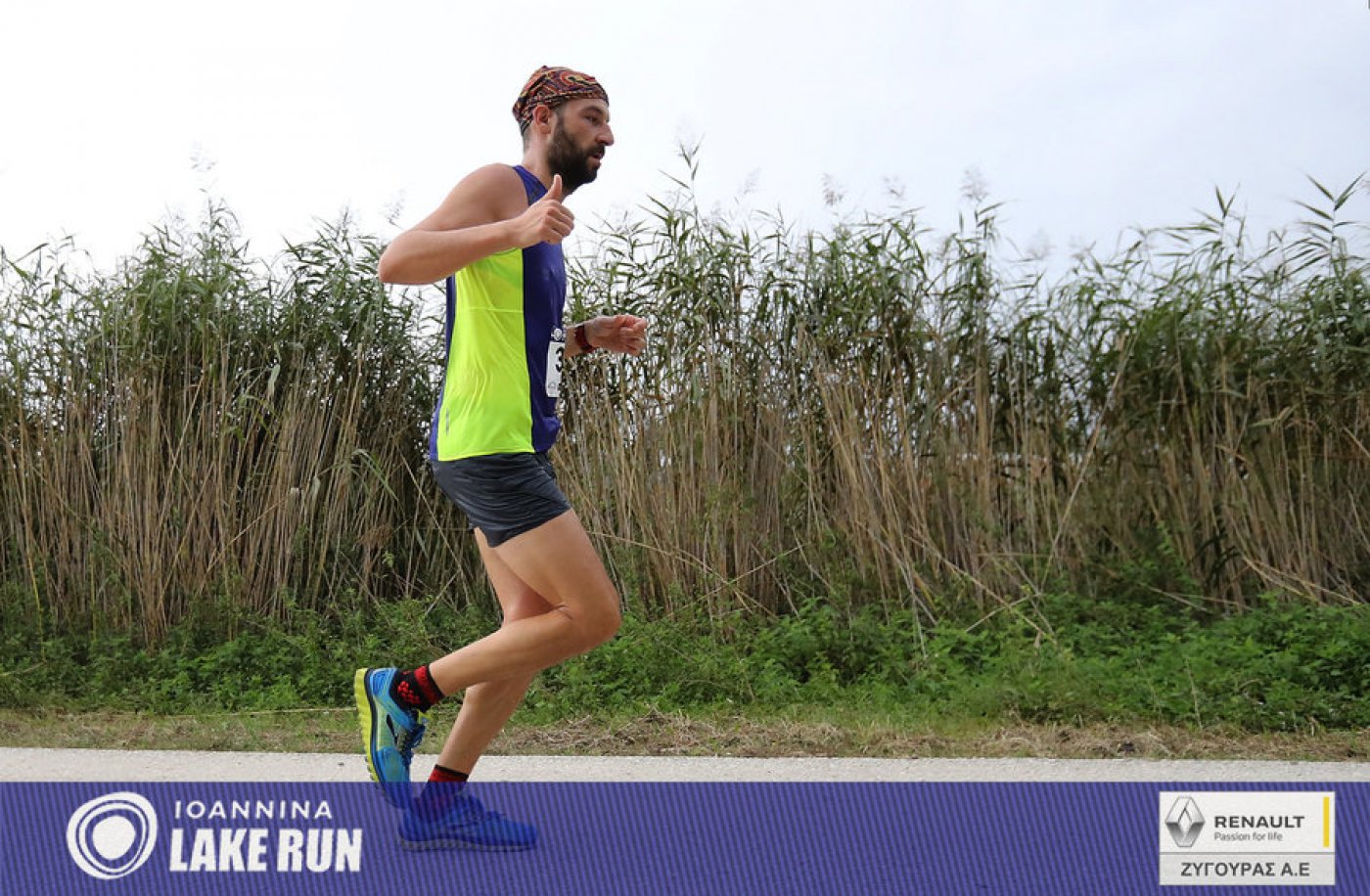 Το πέρασμα των δρομέων από τον παραλίμνιο οικισμό των Λογγάδων και το καμπαναριό της εκκλησίας της Κοίμησης της Θεοτόκου. Εικόνες από τη διαδρομή έξω από τα χωριά της Βασιλικής και της Κατσρίτσας έως την είσοδο στον παραλίμνιο πεζόδρομο-ποδηλατόδρομο.