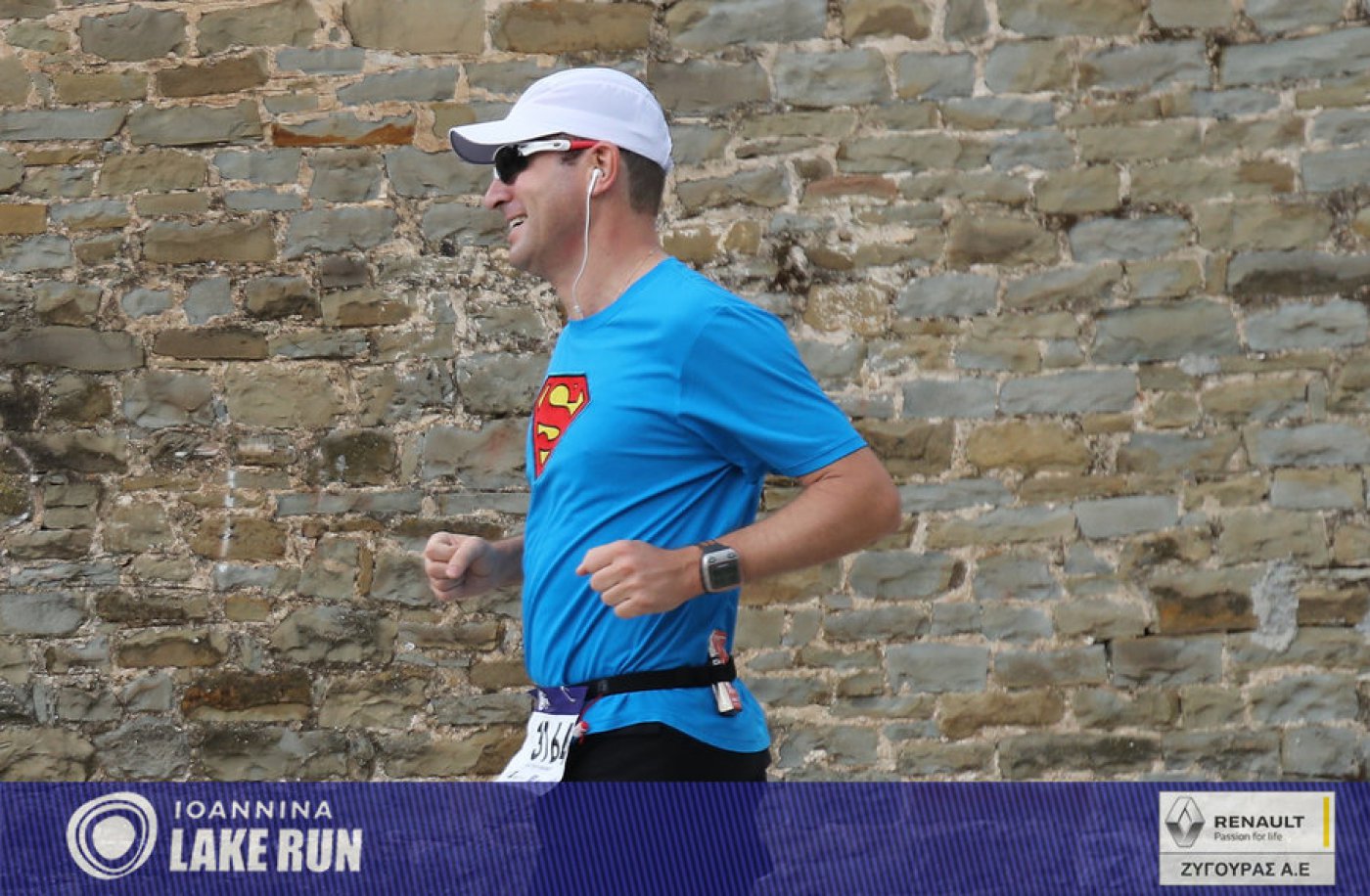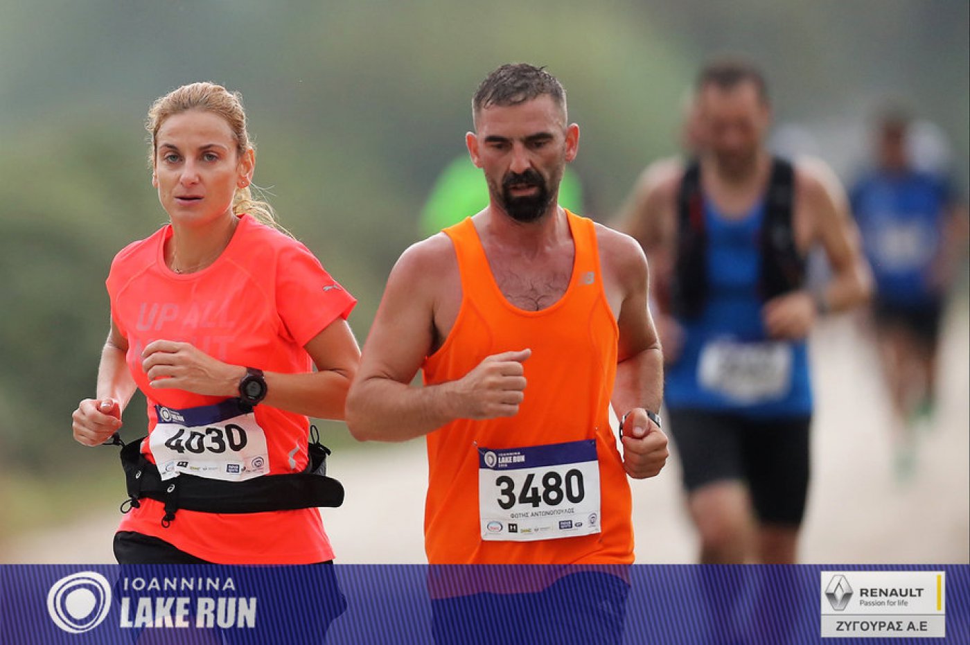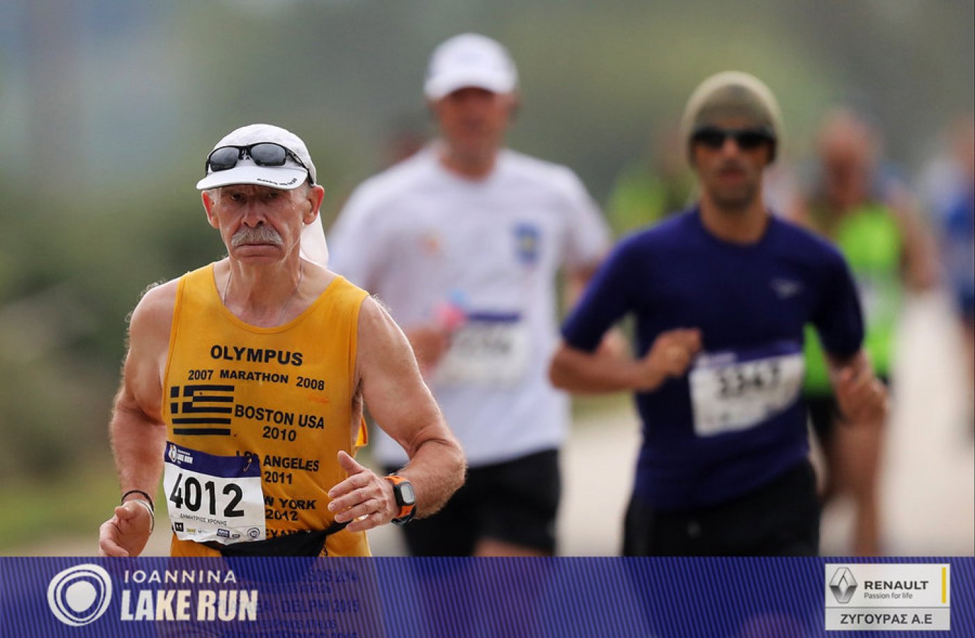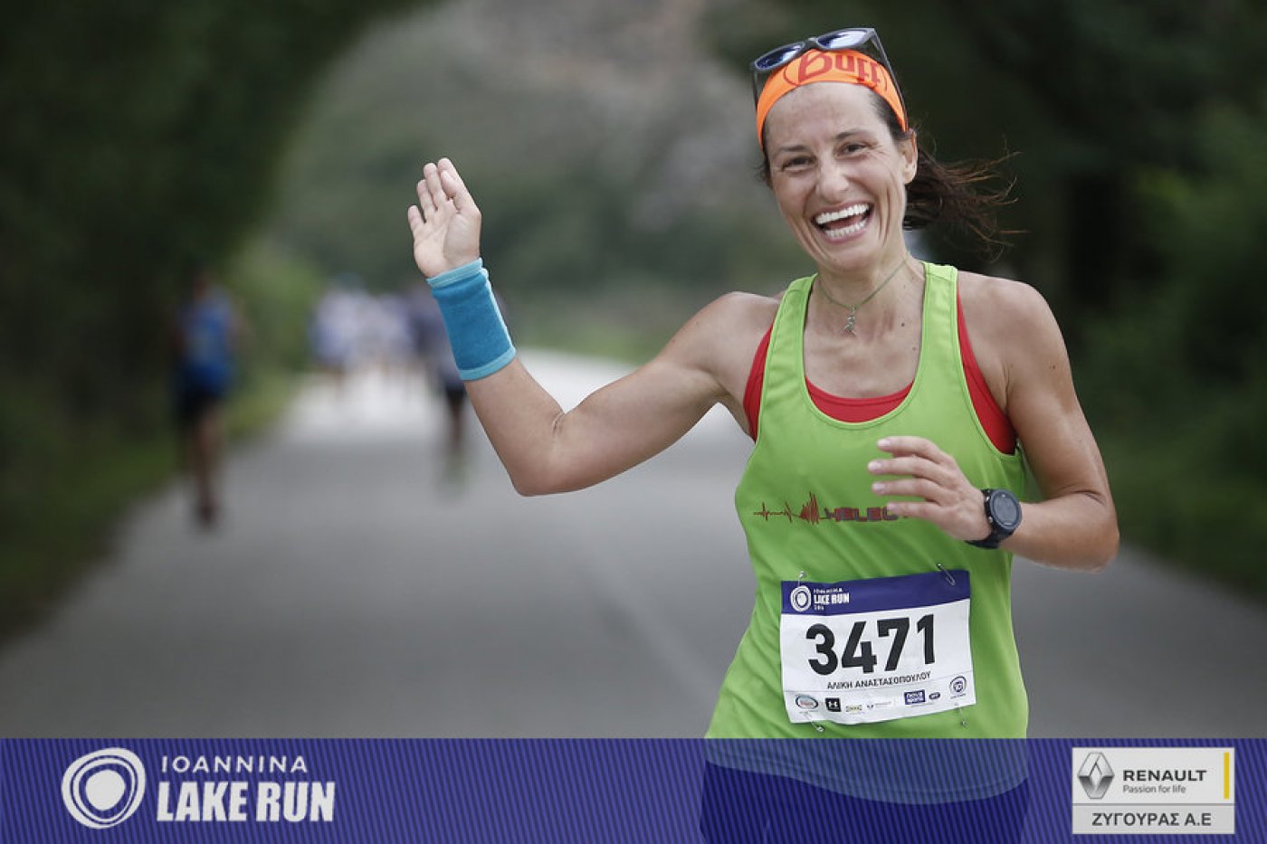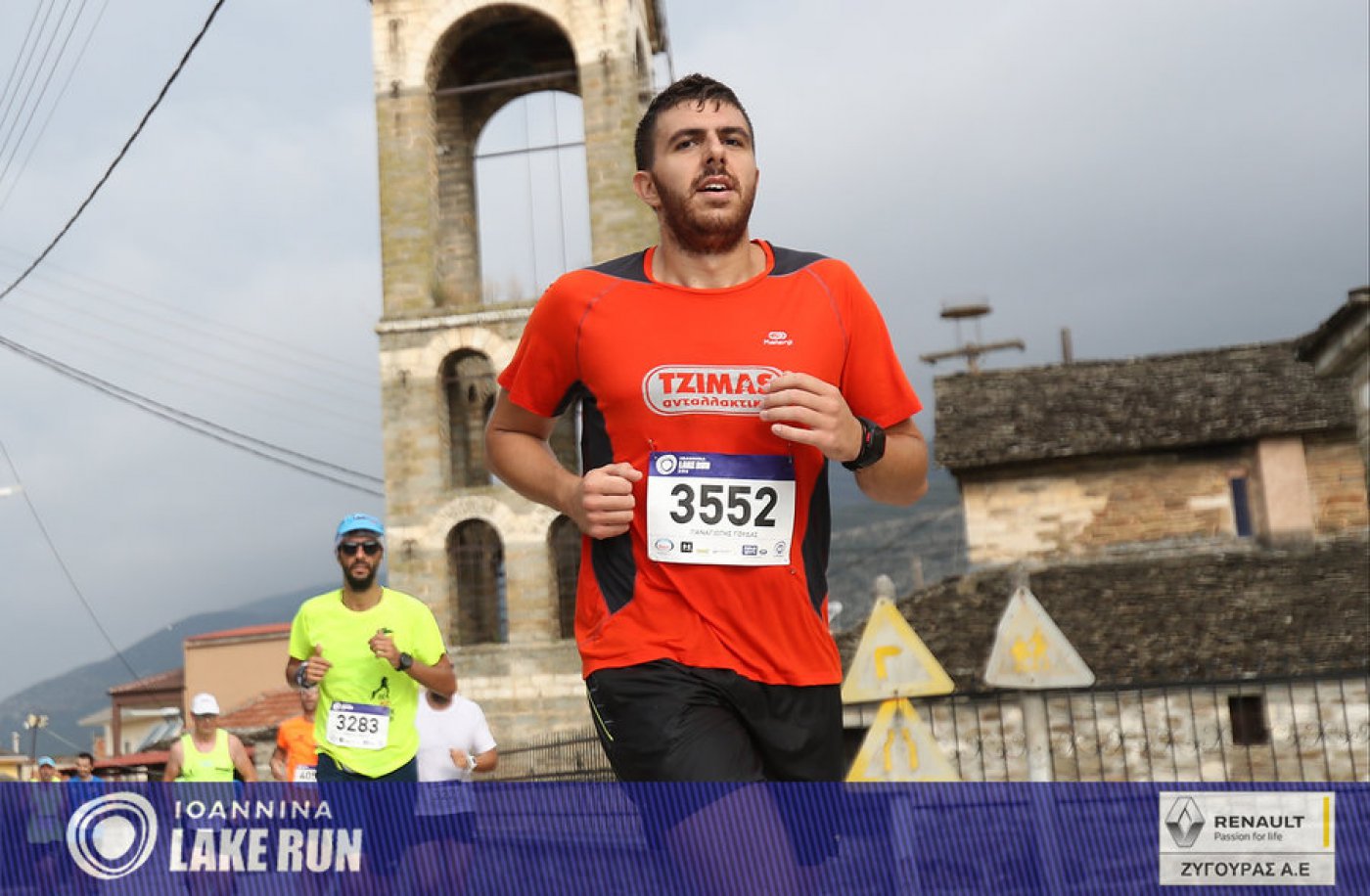 Το πέρασμα των δρομέων από τον παραλίμνιο οικισμό των Λογγάδων και το καμπαναριό της εκκλησίας της Κοίμησης της Θεοτόκου. Εικόνες από τη διαδρομή έξω από τα χωριά της Βασιλικής και της Κατσρίτσας έως την είσοδο στον παραλίμνιο πεζόδρομο-ποδηλατόδρομο.