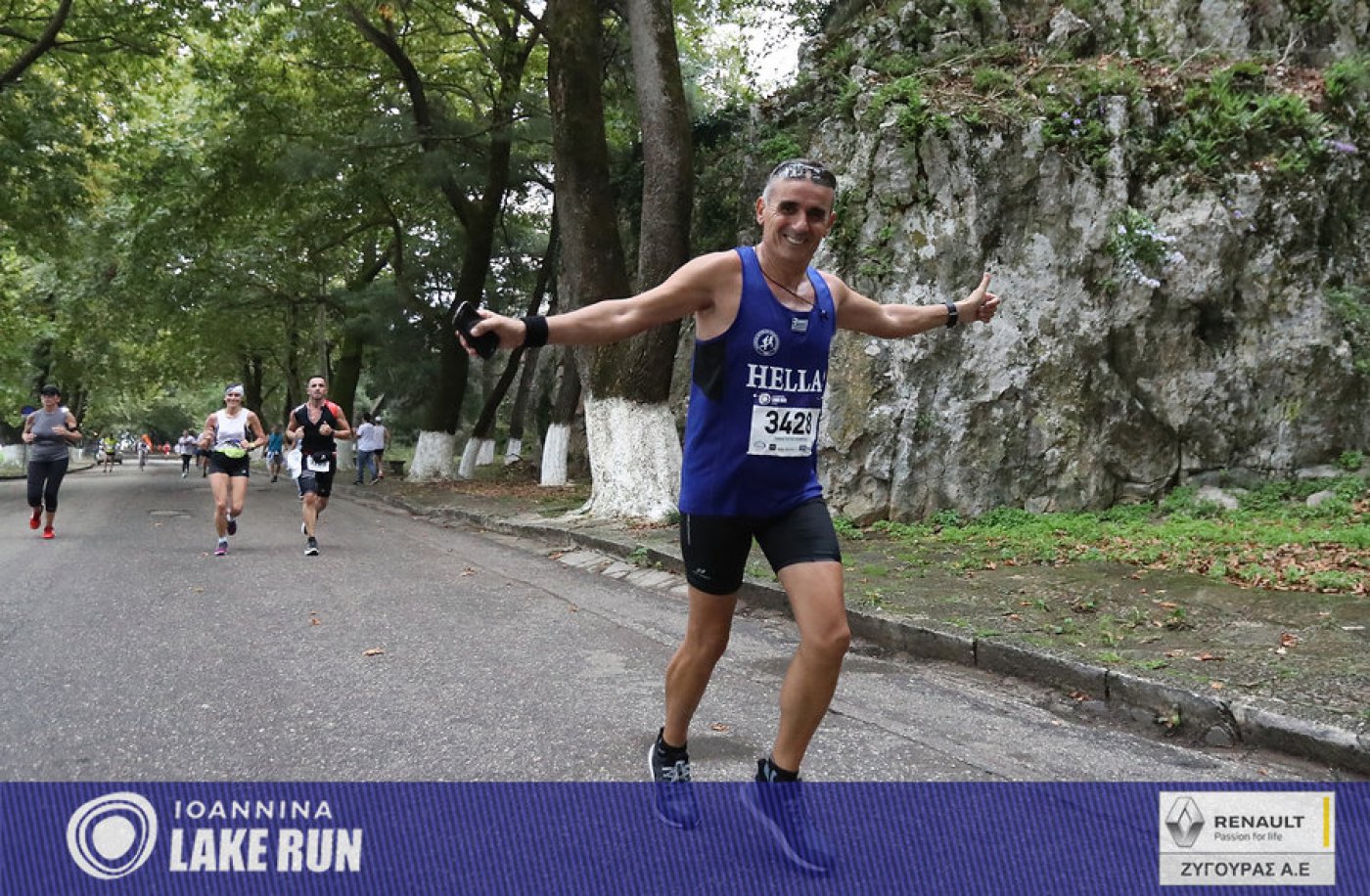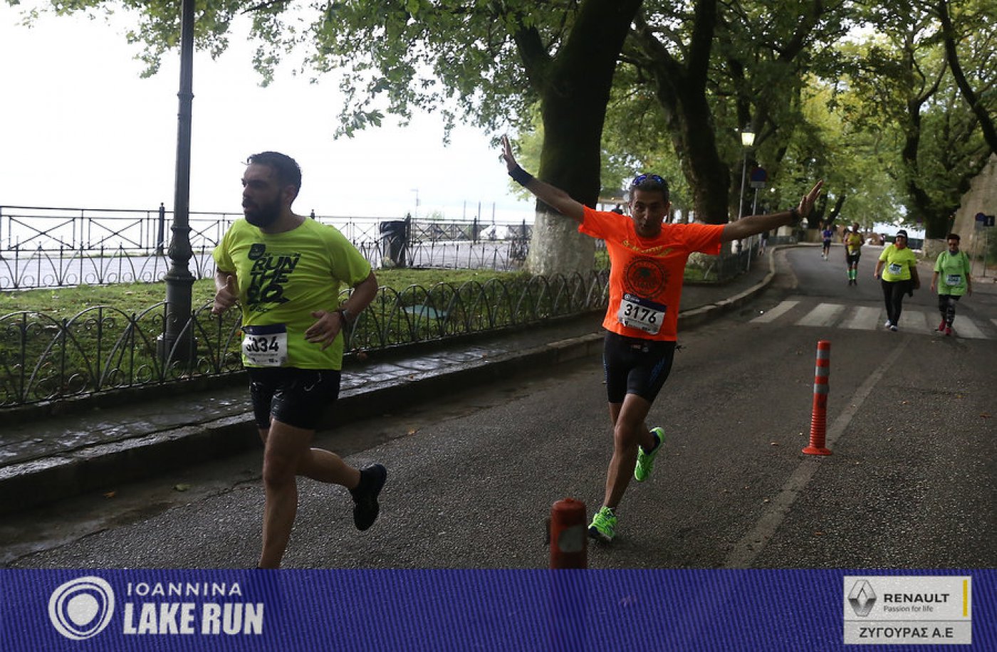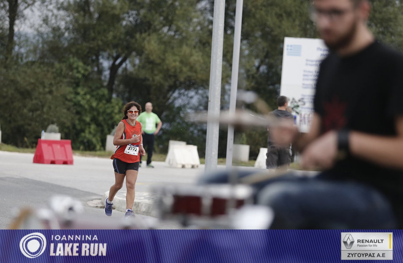 Υπό τους ήχους μιας μπάντας κρουστών του Ioannina School of Music μπήκαν στα τελευταία 5 χλμ. του Γύρου Λίμνης οι δρομείς, για να συνεχίσουν στην Ακτή Μιαούλη και στον παραλίμνιο δρόμο της Διονυσίου Φιλοσόφου, στη σκιά των υπεραιωνόβιων πλατάνων και των τειχών του Κάστρου.