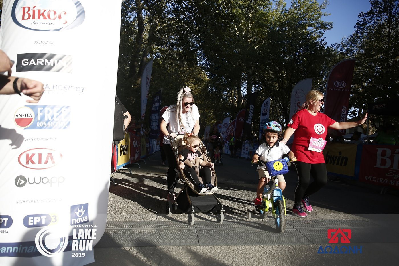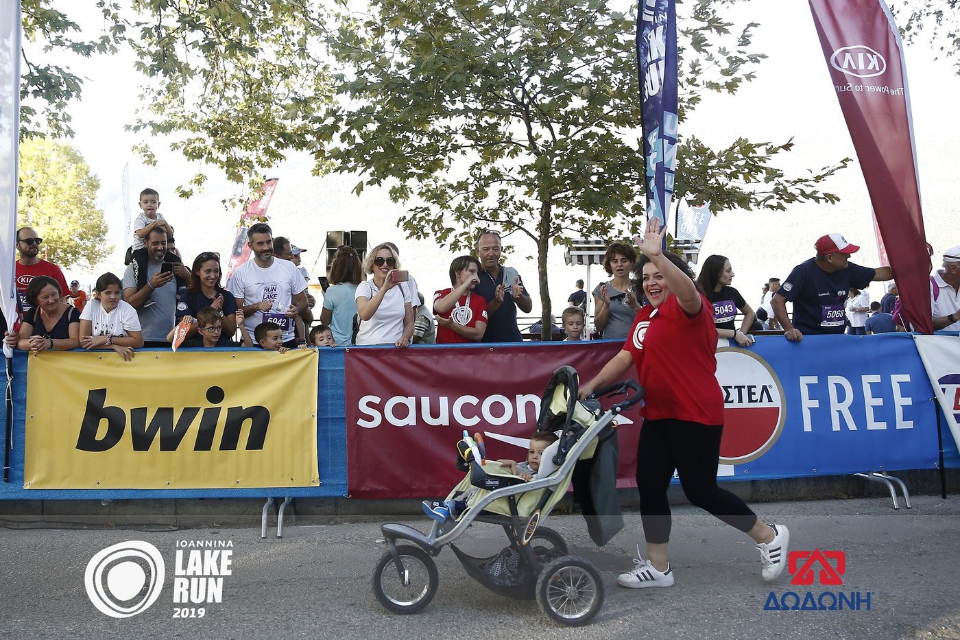Αν και άτυποι νικητές αναδείχθηκαν δύο μπαμπάδες με τα παιδιά τους στο καρότσι, οι μαμάδες έδωσαν και φέτος δυναμικό παρών, με κάποιες να έχουν επί σειρά ετών συμμετοχή σε αυτή την ξεχωριστή παραλίμνια διαδρομή. Μάλιστα, μία εξ αυτών συμπλήρωσε στον φετινό αγώνα πέντε συμμετοχές. Στον τερματισμό τις μαμάδες περίμενε μια όμορφη έκπληξη, καθώς ο υπεύθυνος τύπου της γαλακτοβιομηχανίας «Δωδώνη», ο οποίος έδωσε και την εκκίνηση του «Μαμά-Καρότσι», μοίρασε, με τη βοήθεια των εθελοντών, προϊόντα «Δωδώνη» σε όλες τις συμμετέχουσες.