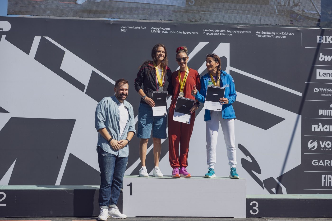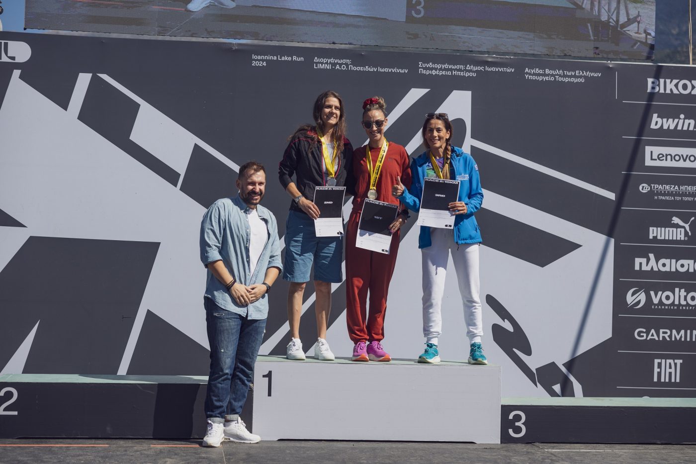 Στιγμιότυπα από τις απονομές του αγώνα των 10 χλμ. του Ioannina Lake Run 2024.