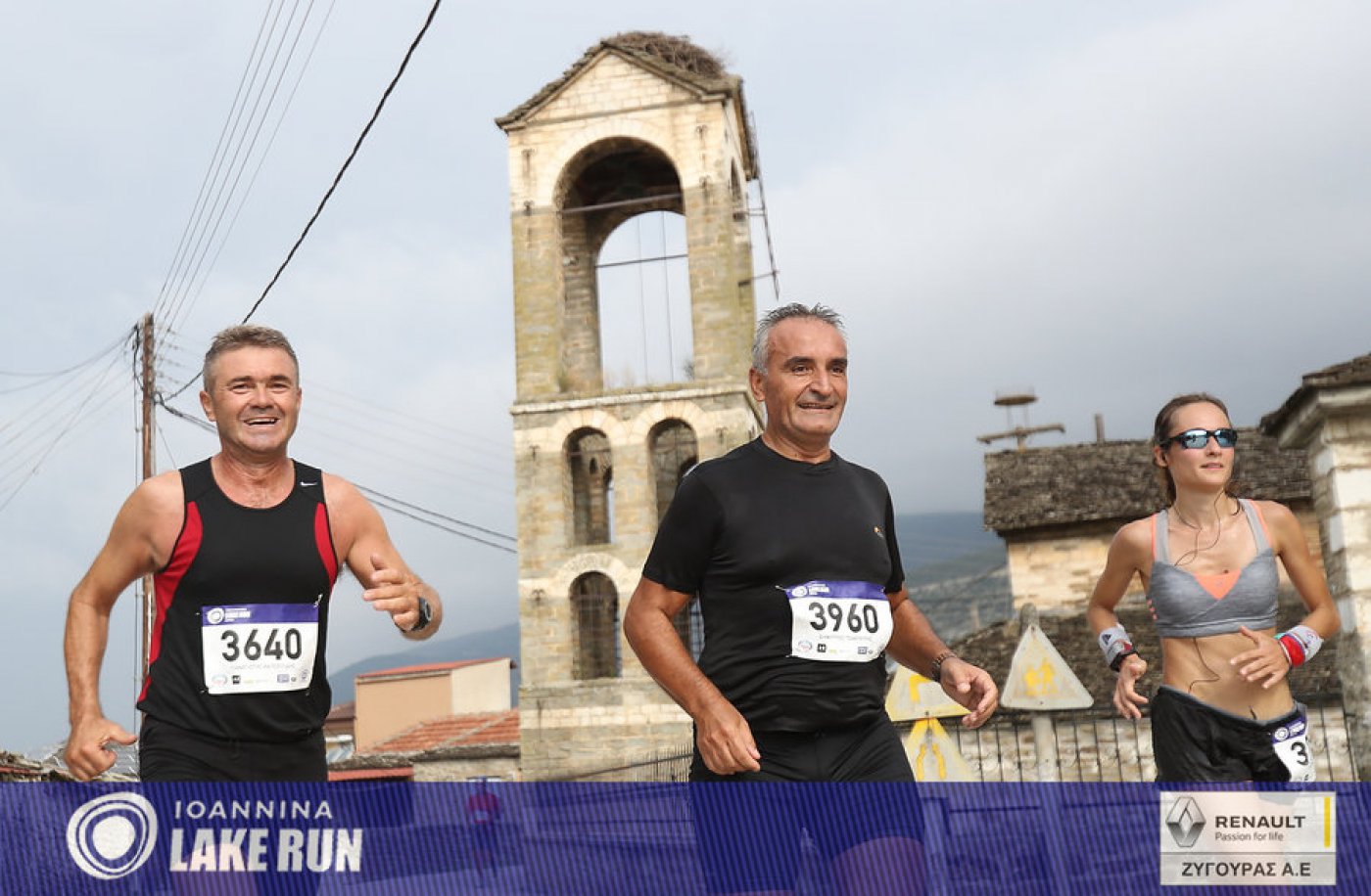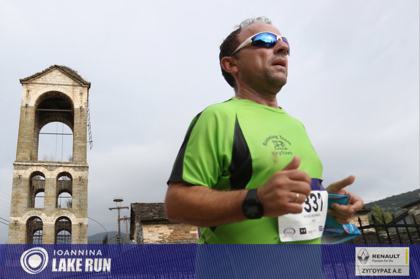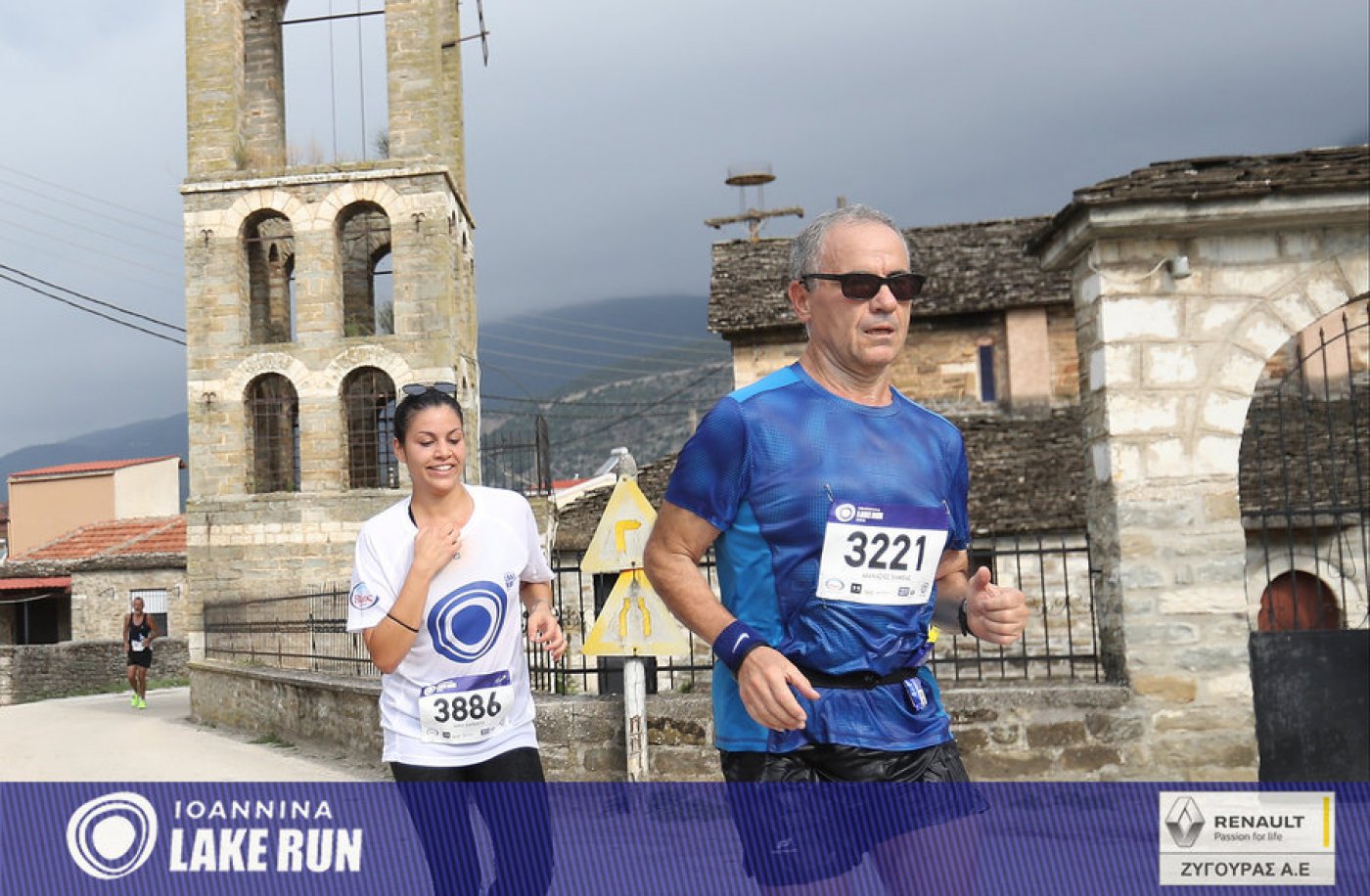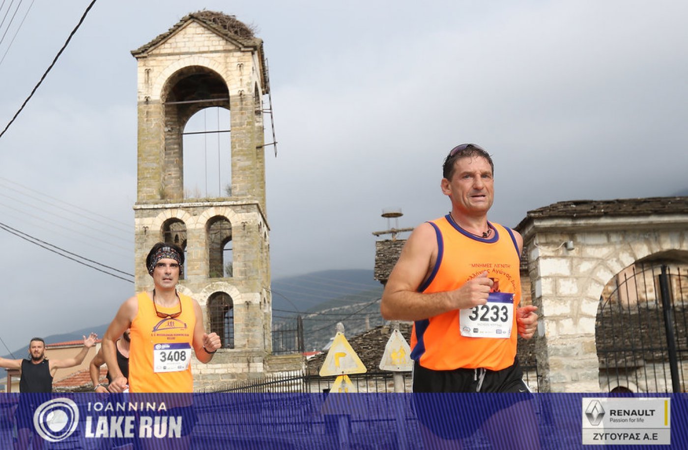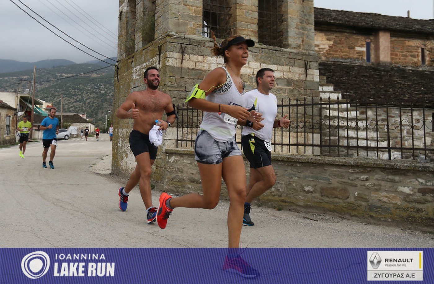 Το πέρασμα των δρομέων από τον παραλίμνιο οικισμό των Λογγάδων και το καμπαναριό της εκκλησίας της Κοίμησης της Θεοτόκου. Εικόνες από τη διαδρομή έξω από τα χωριά της Βασιλικής και της Κατσρίτσας έως την είσοδο στον παραλίμνιο πεζόδρομο-ποδηλατόδρομο.