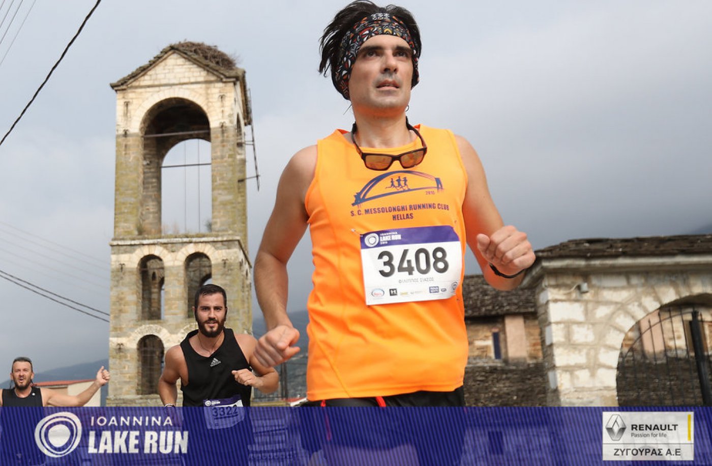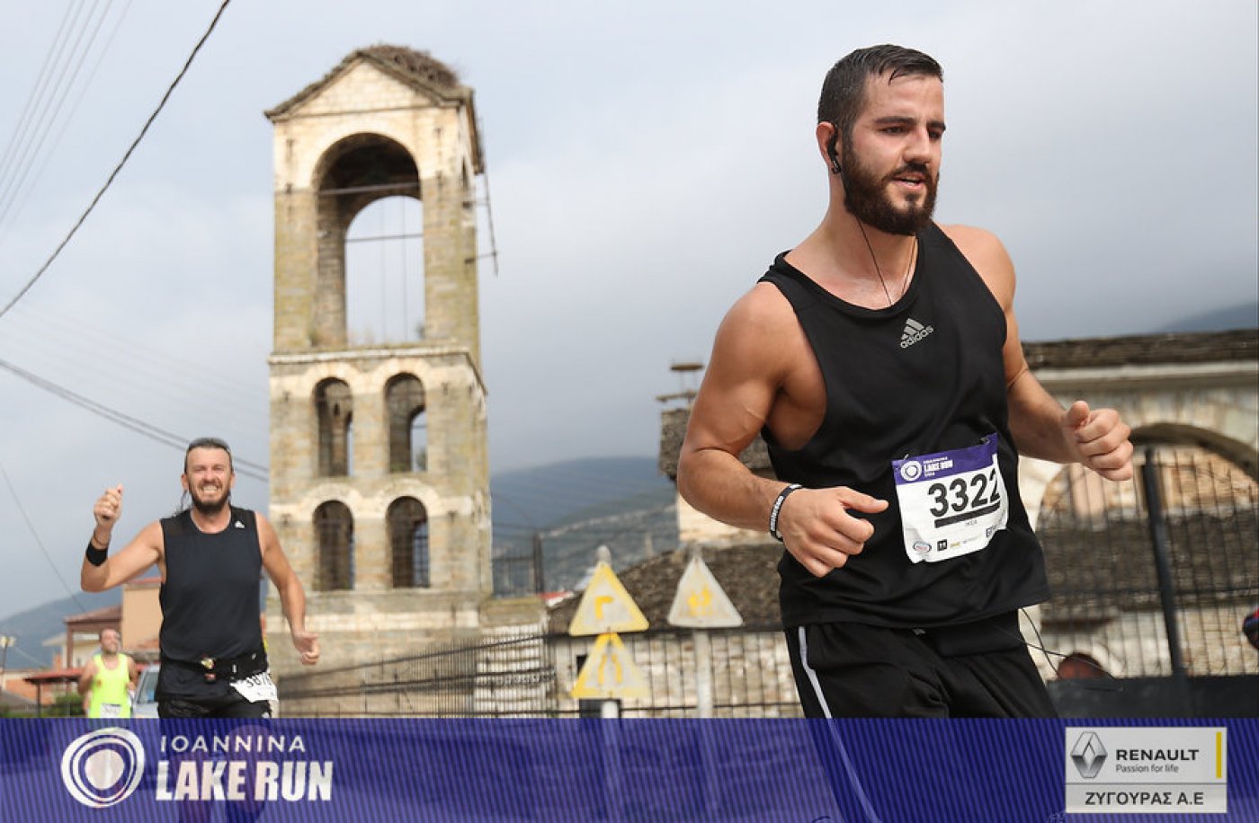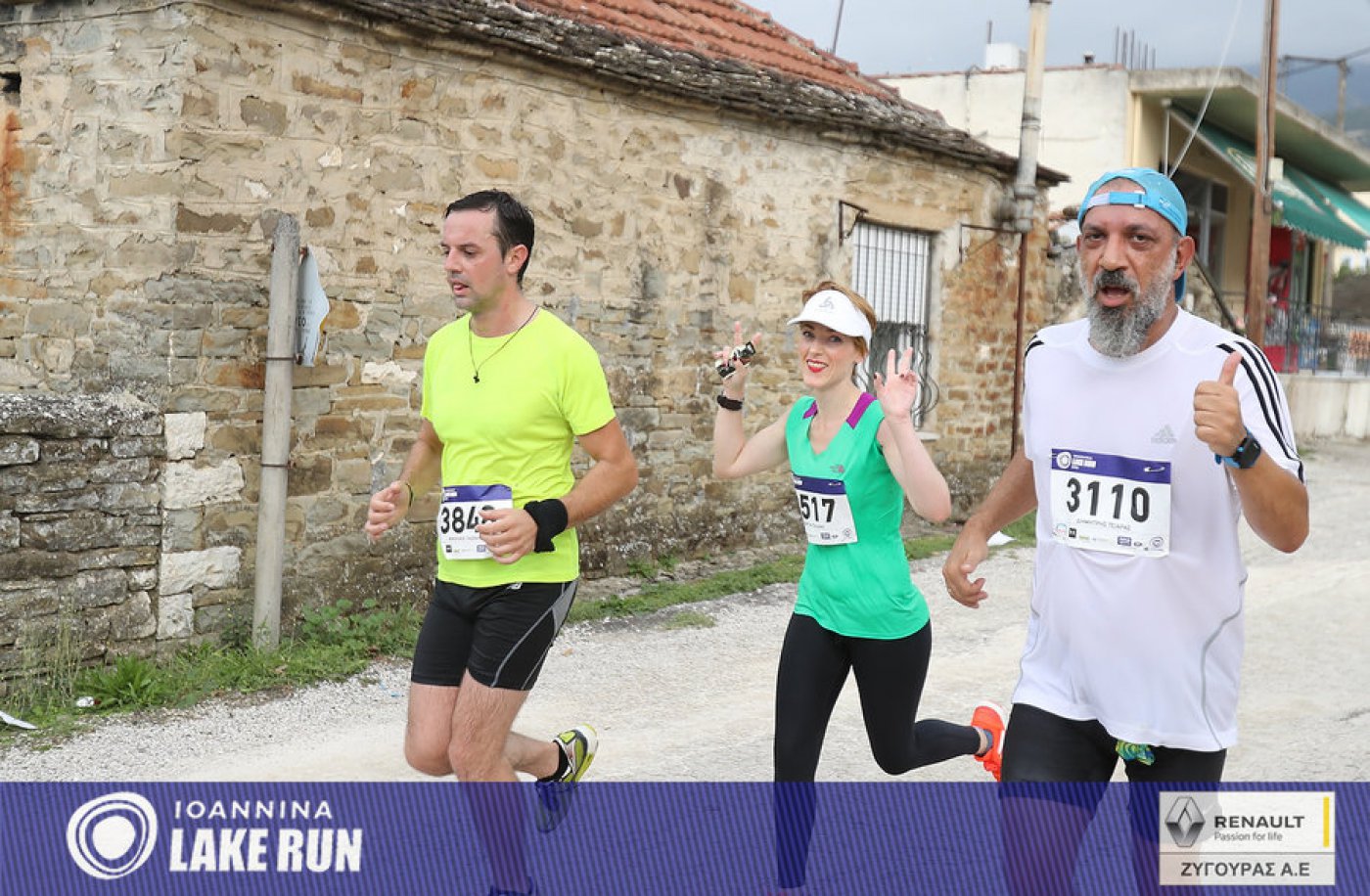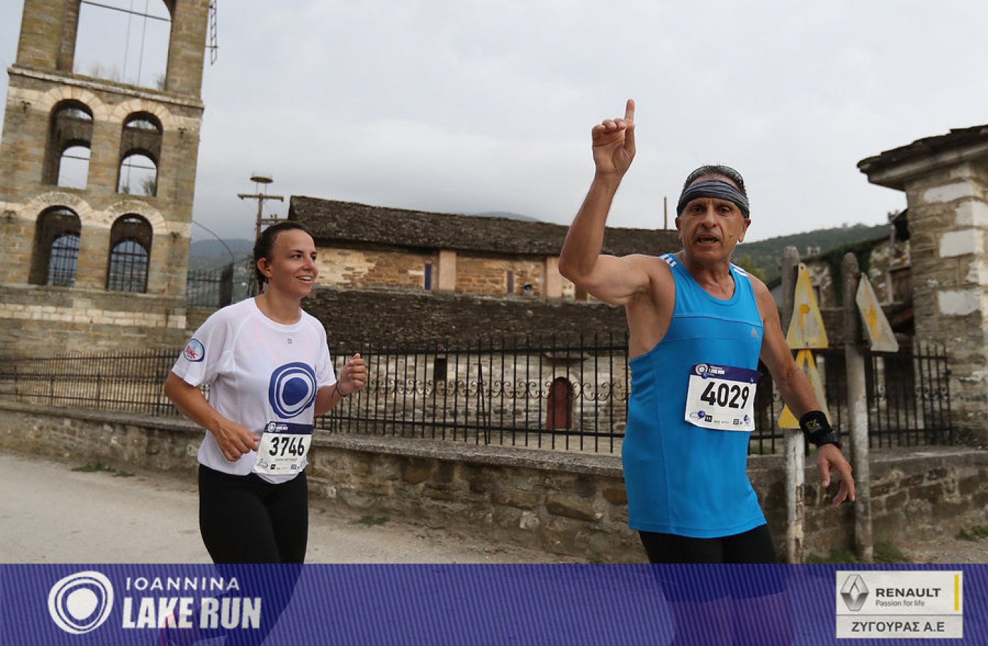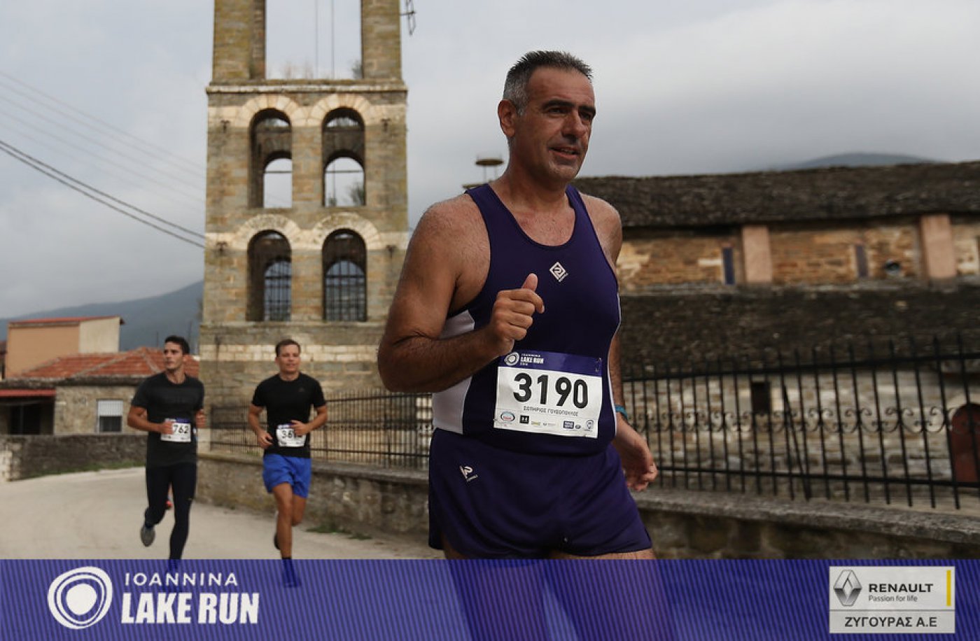 Το πέρασμα των δρομέων από τον παραλίμνιο οικισμό των Λογγάδων και το καμπαναριό της εκκλησίας της Κοίμησης της Θεοτόκου. Εικόνες από τη διαδρομή έξω από τα χωριά της Βασιλικής και της Κατσρίτσας έως την είσοδο στον παραλίμνιο πεζόδρομο-ποδηλατόδρομο.