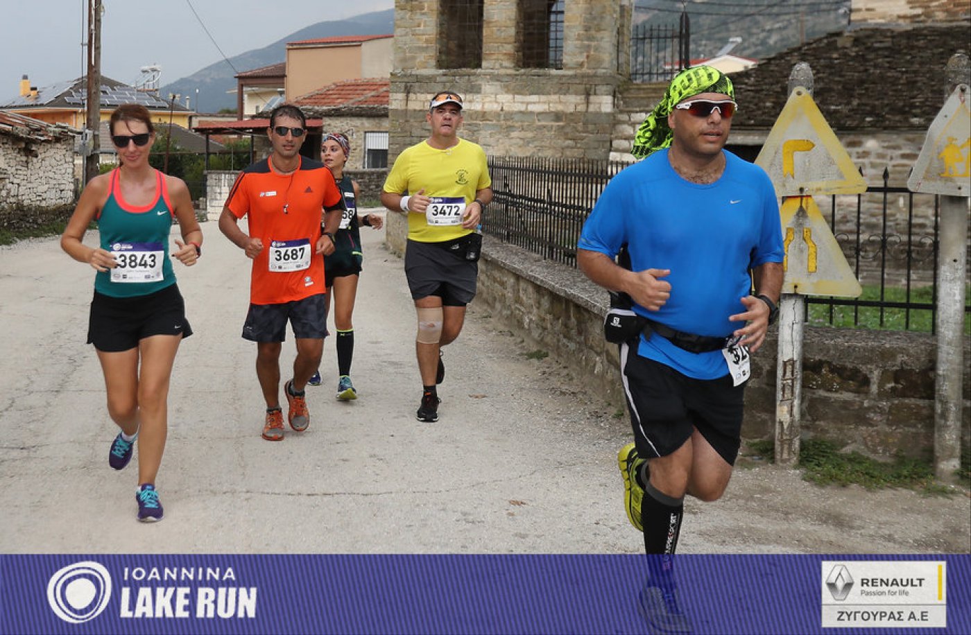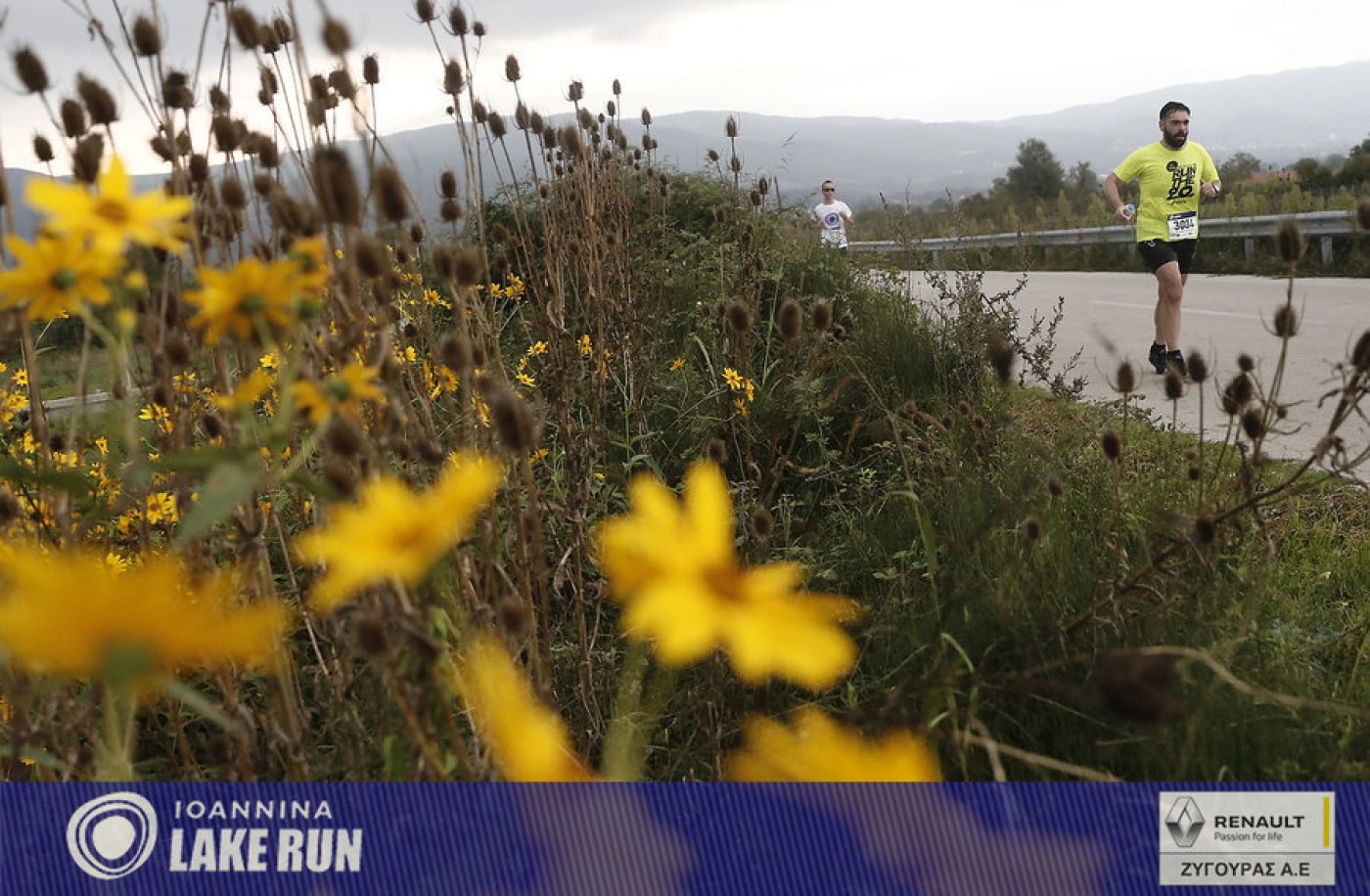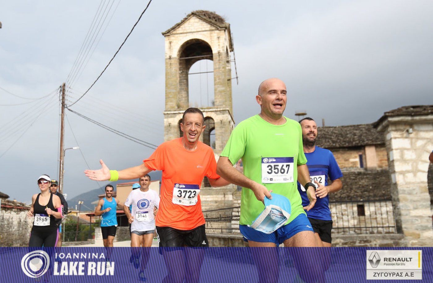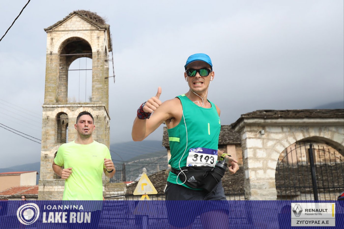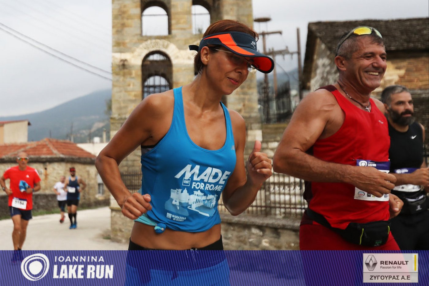 Το πέρασμα των δρομέων από τον παραλίμνιο οικισμό των Λογγάδων και το καμπαναριό της εκκλησίας της Κοίμησης της Θεοτόκου. Εικόνες από τη διαδρομή έξω από τα χωριά της Βασιλικής και της Κατσρίτσας έως την είσοδο στον παραλίμνιο πεζόδρομο-ποδηλατόδρομο.