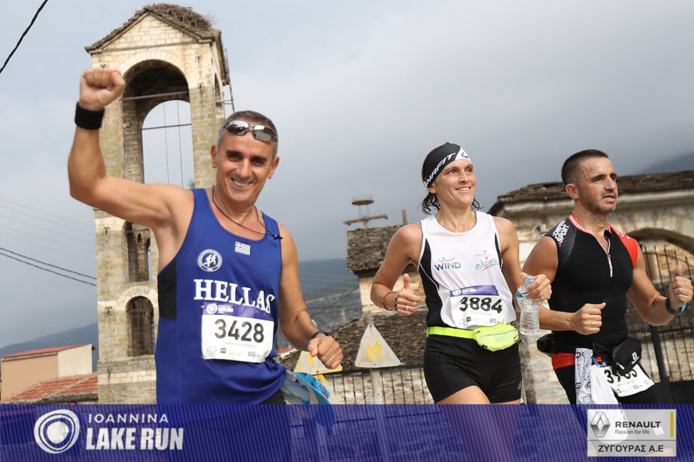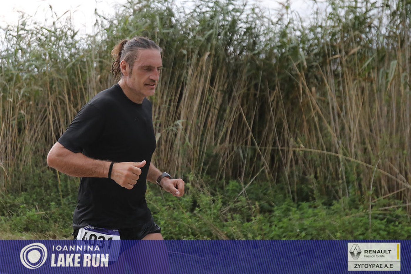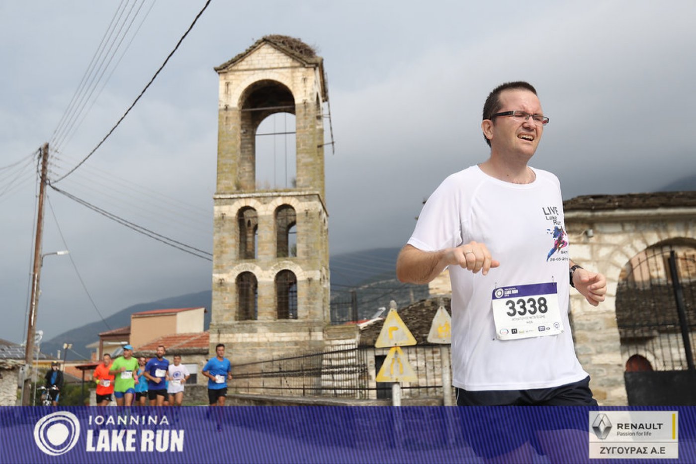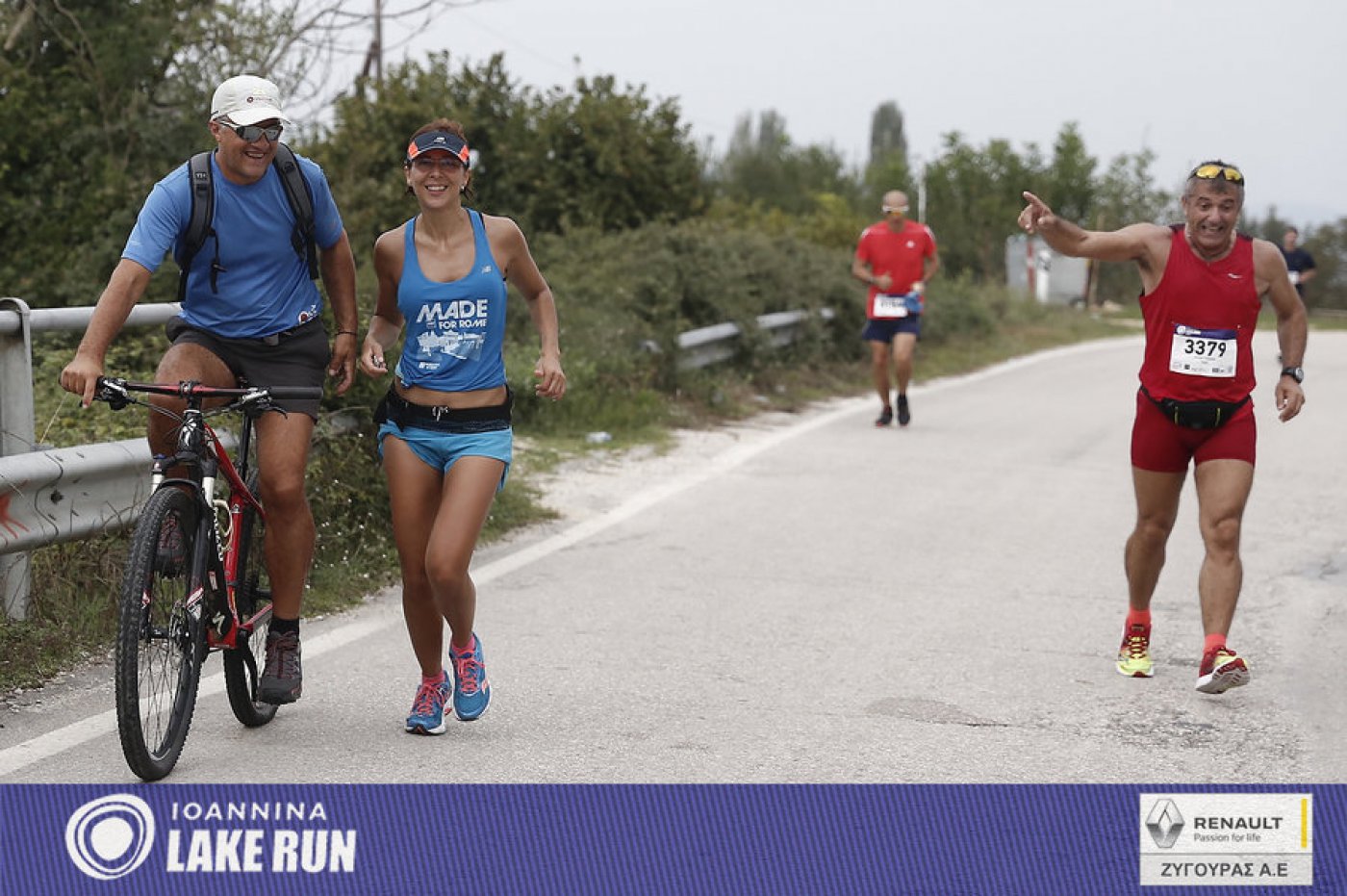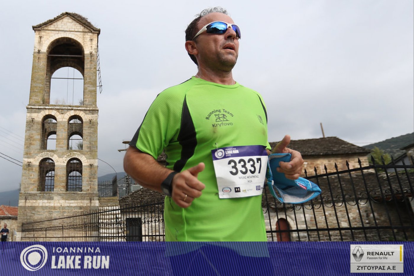 Το πέρασμα των δρομέων από τον παραλίμνιο οικισμό των Λογγάδων και το καμπαναριό της εκκλησίας της Κοίμησης της Θεοτόκου. Εικόνες από τη διαδρομή έξω από τα χωριά της Βασιλικής και της Κατσρίτσας έως την είσοδο στον παραλίμνιο πεζόδρομο-ποδηλατόδρομο.