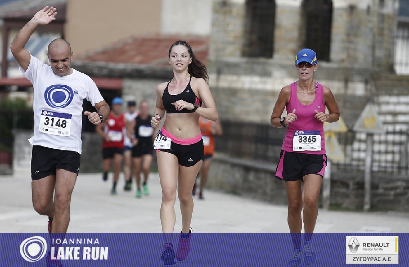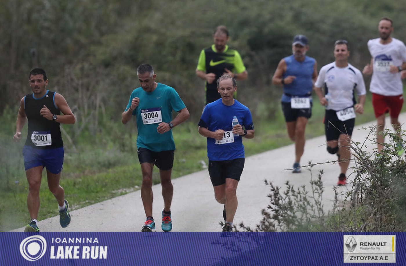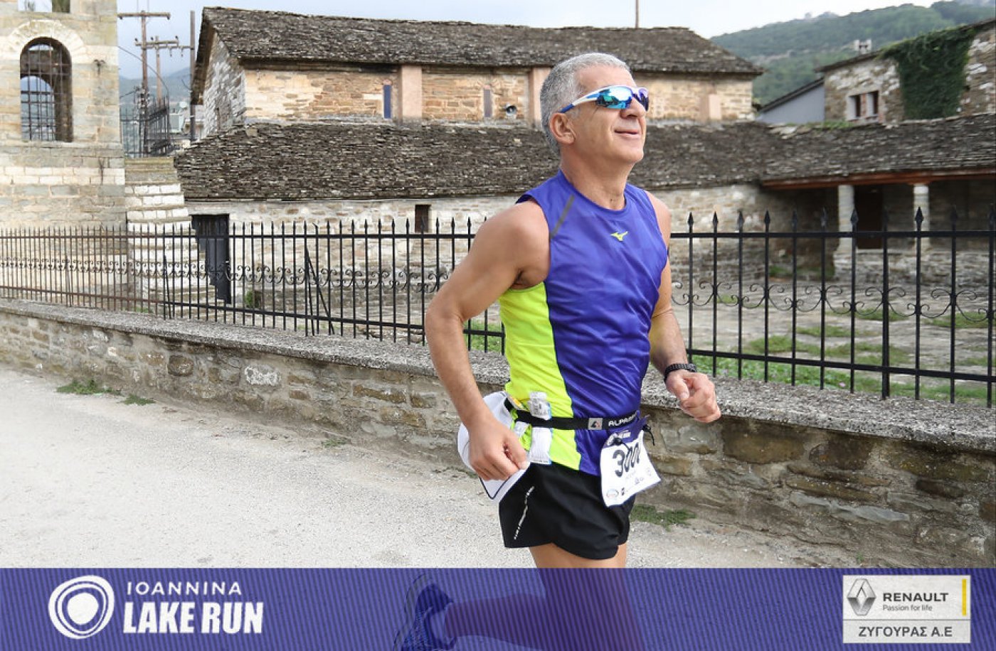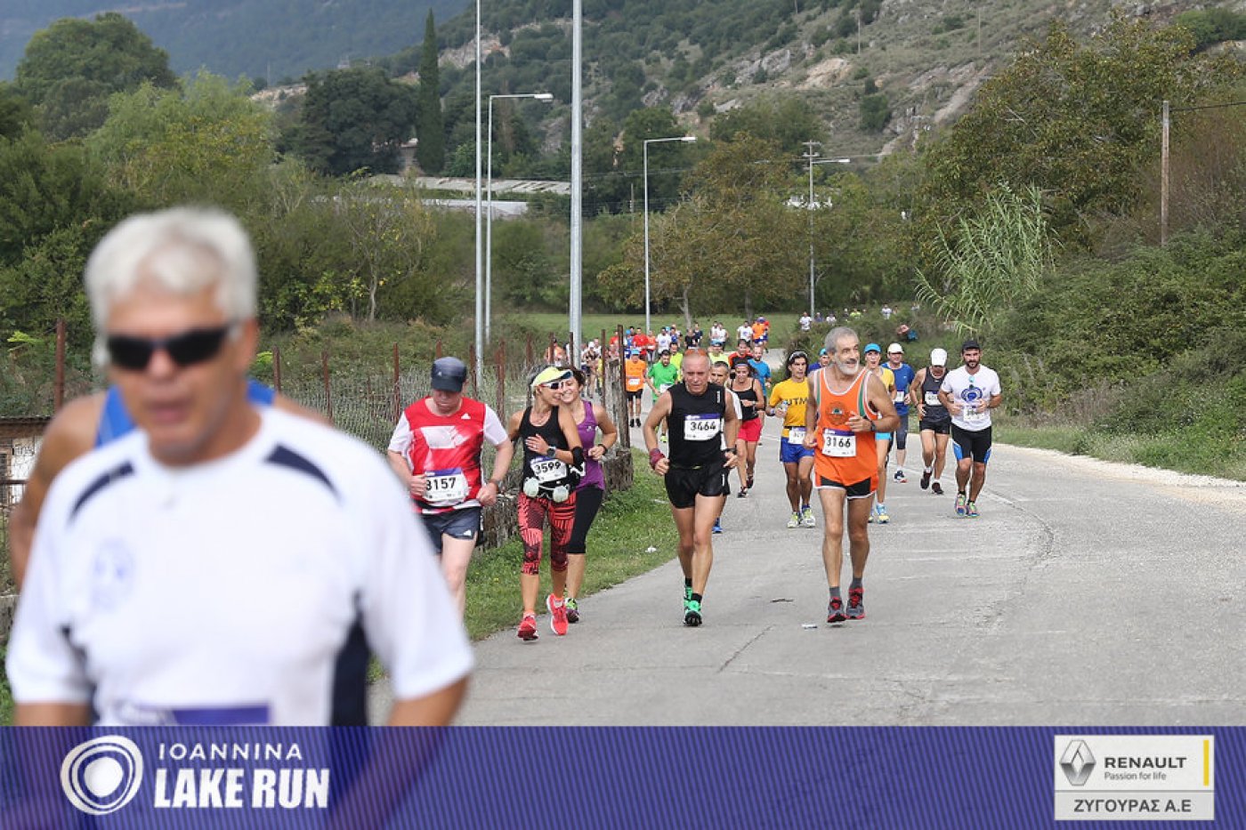 Το πέρασμα των δρομέων από τον παραλίμνιο οικισμό των Λογγάδων και το καμπαναριό της εκκλησίας της Κοίμησης της Θεοτόκου. Εικόνες από τη διαδρομή έξω από τα χωριά της Βασιλικής και της Κατσρίτσας έως την είσοδο στον παραλίμνιο πεζόδρομο-ποδηλατόδρομο.