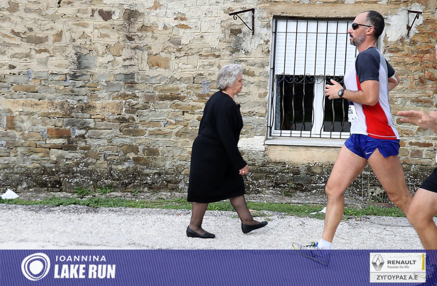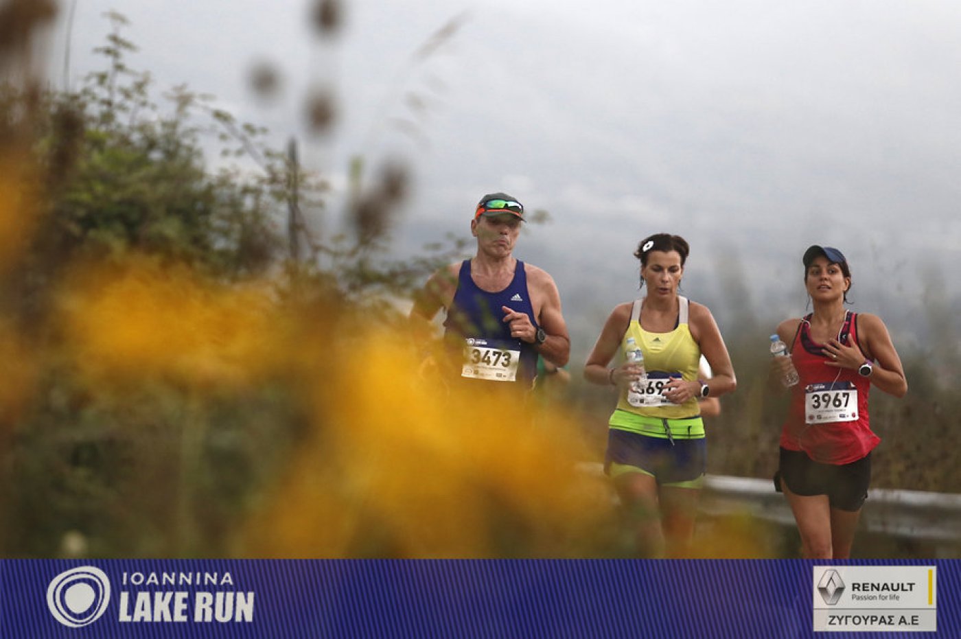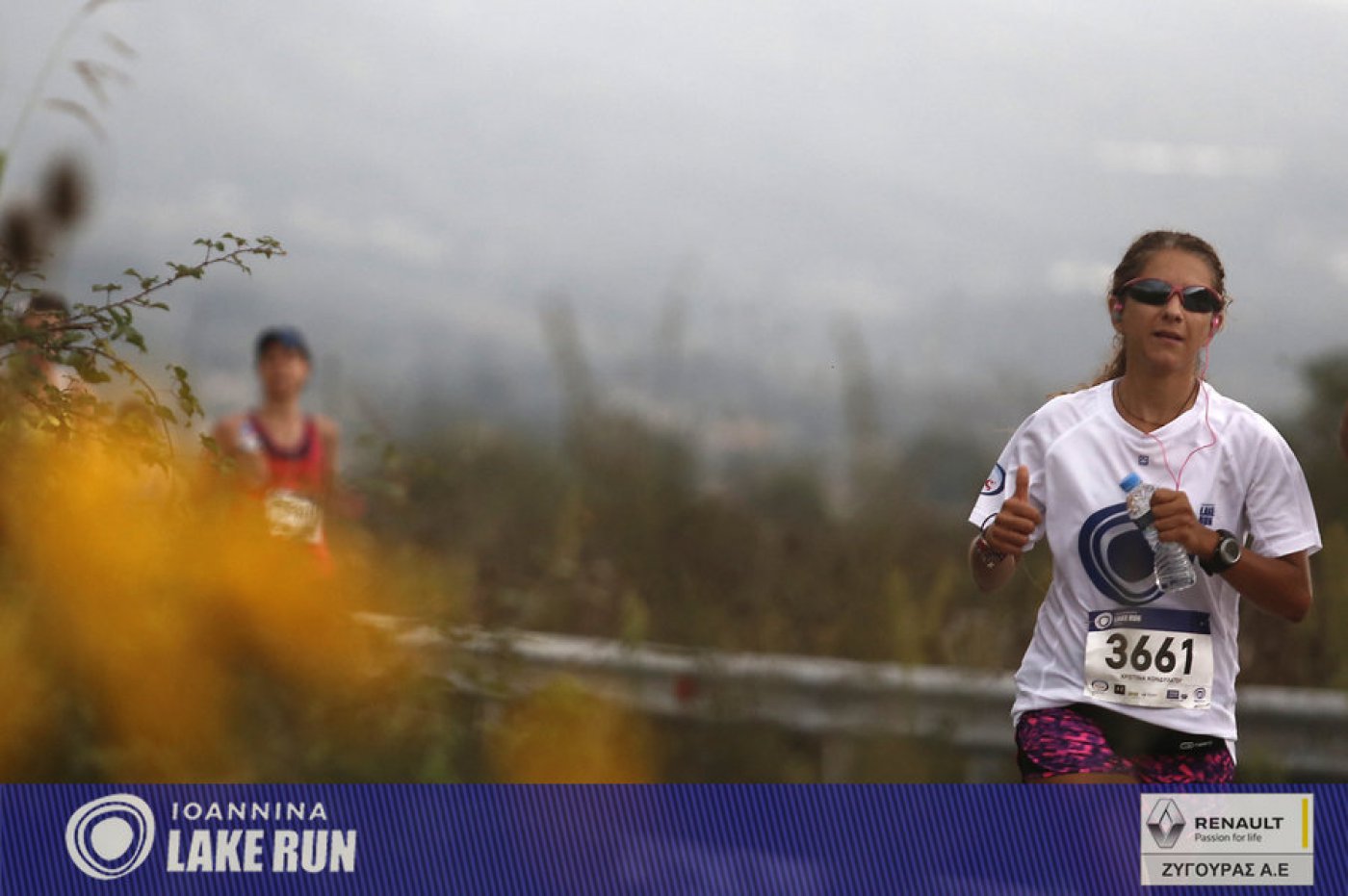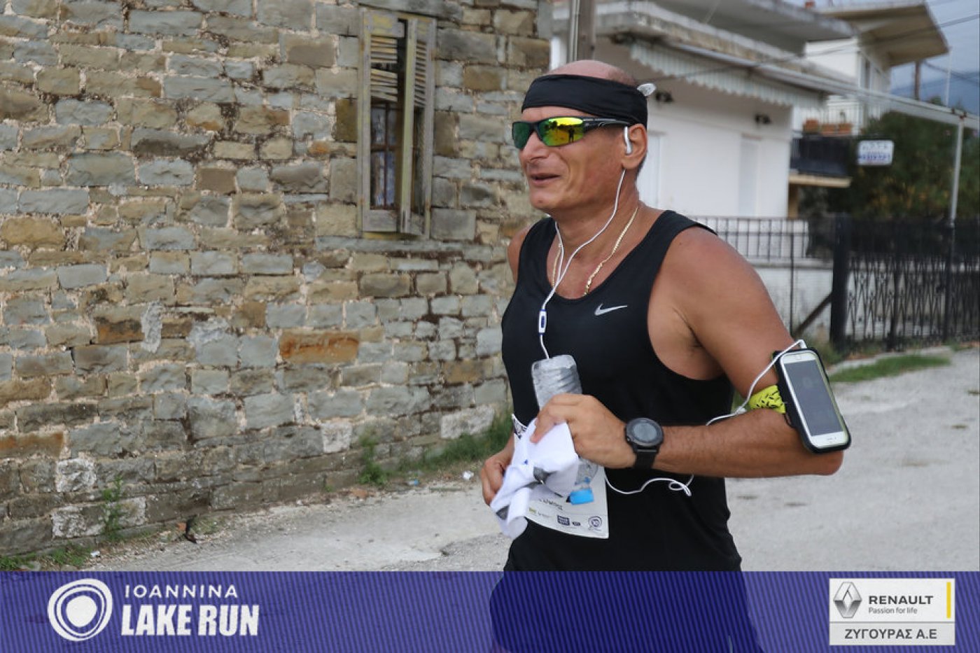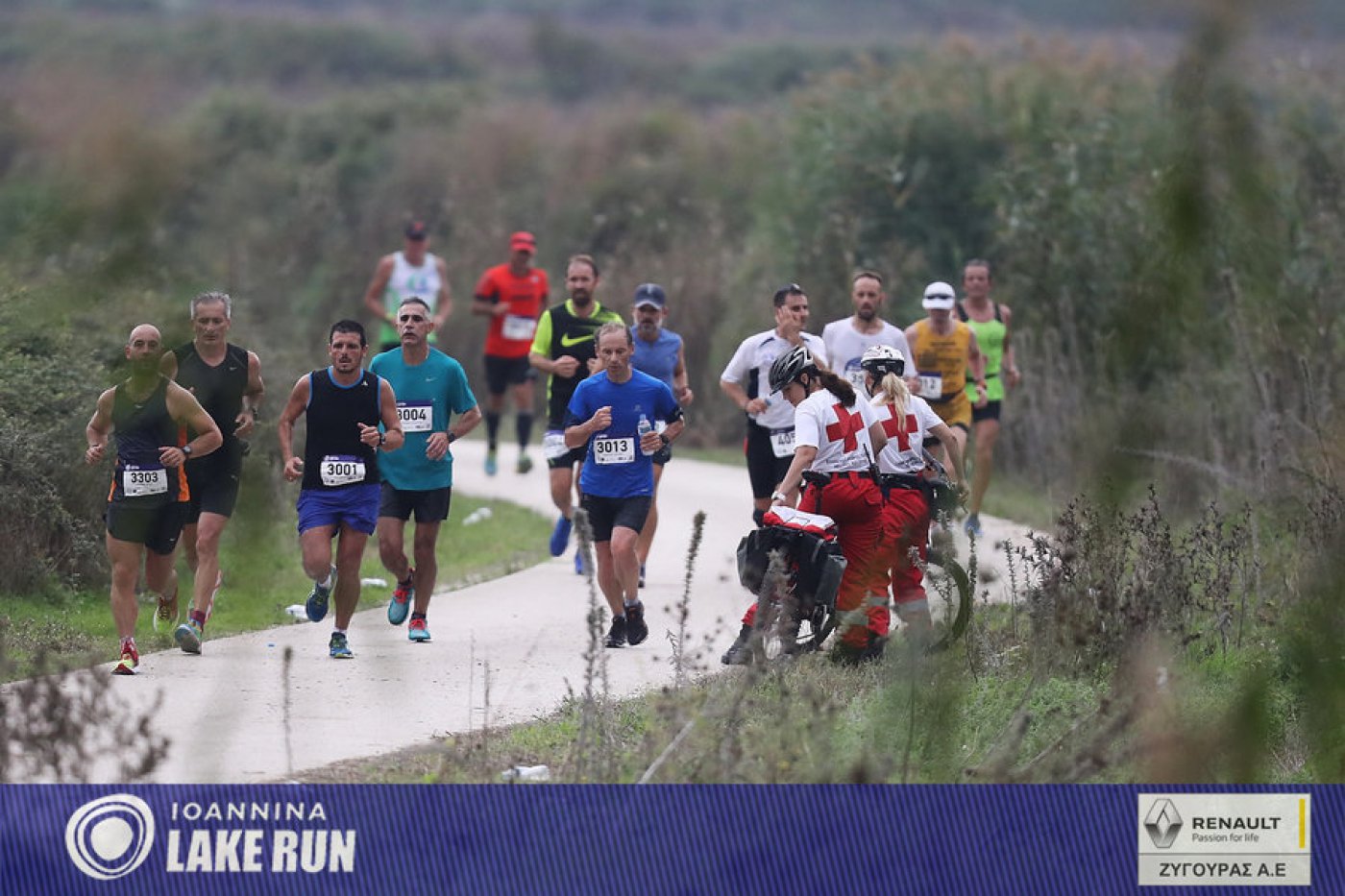 Το πέρασμα των δρομέων από τον παραλίμνιο οικισμό των Λογγάδων και το καμπαναριό της εκκλησίας της Κοίμησης της Θεοτόκου. Εικόνες από τη διαδρομή έξω από τα χωριά της Βασιλικής και της Κατσρίτσας έως την είσοδο στον παραλίμνιο πεζόδρομο-ποδηλατόδρομο.
