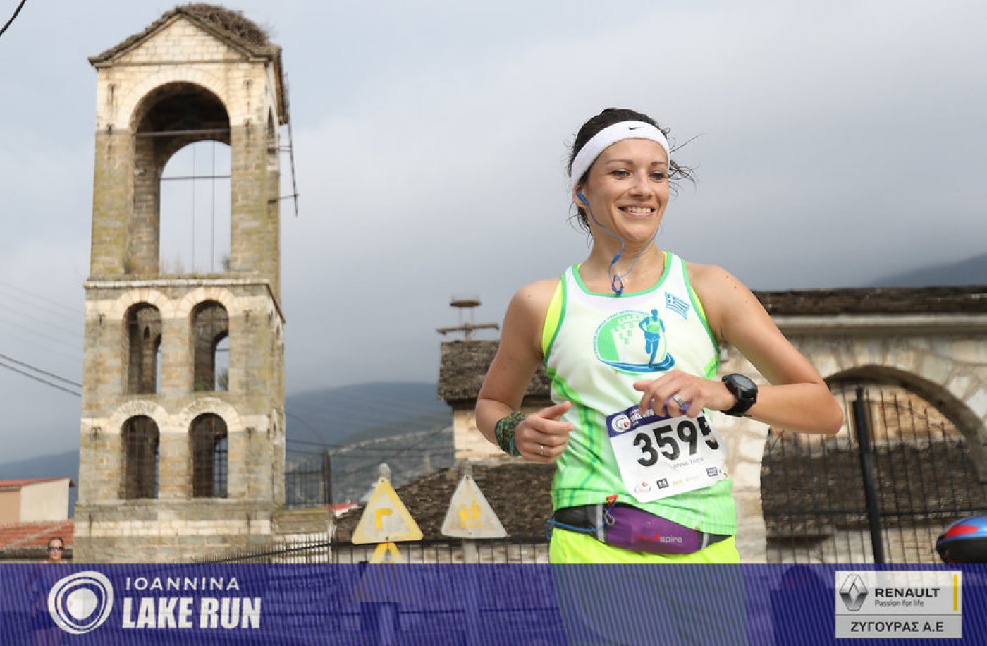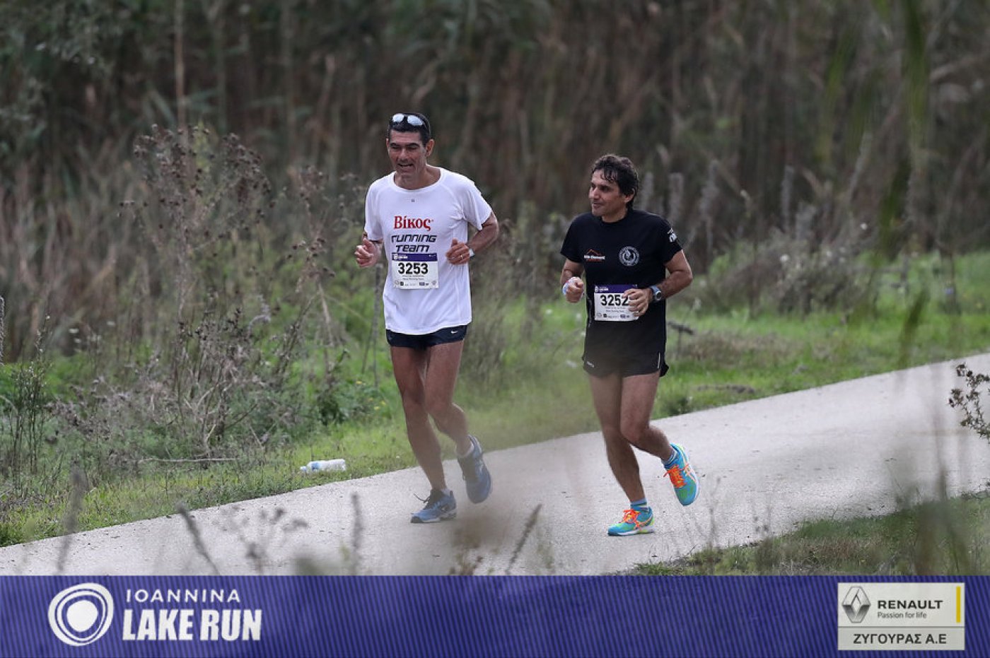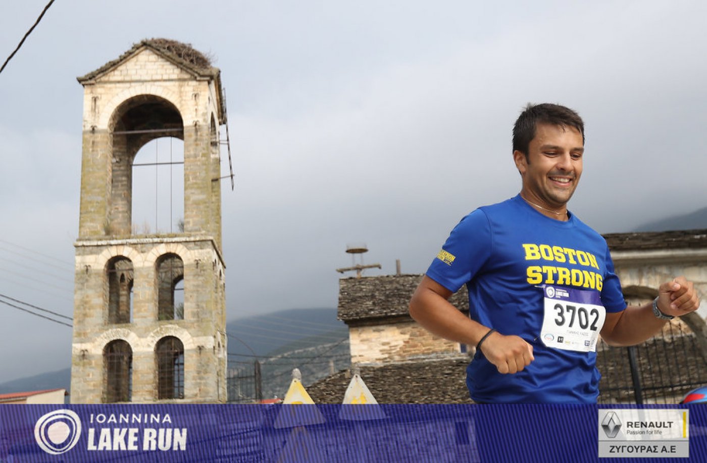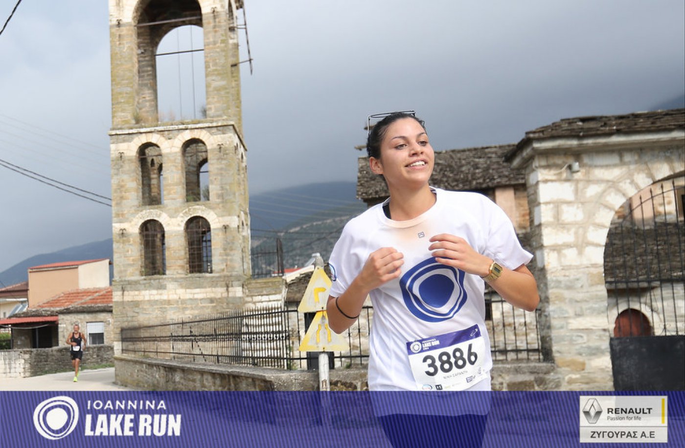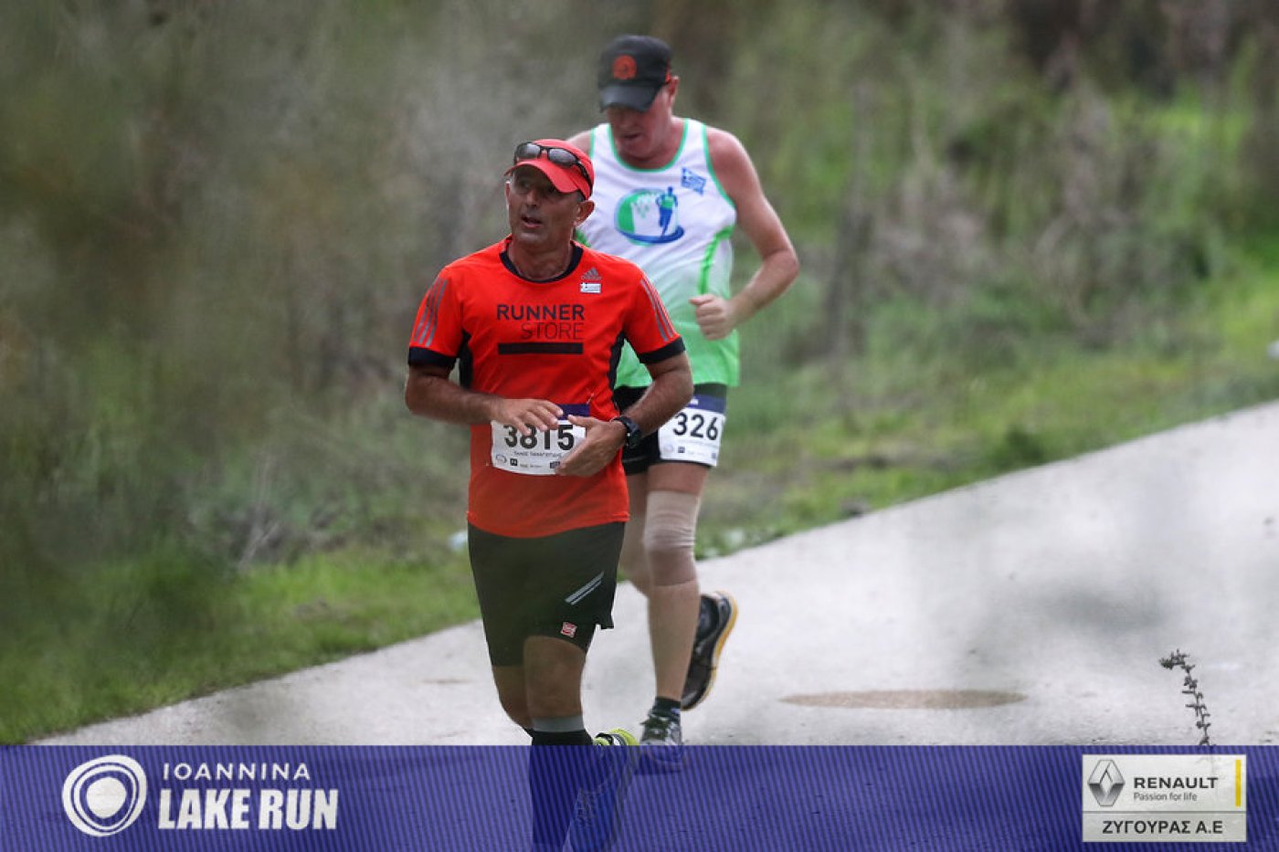 Το πέρασμα των δρομέων από τον παραλίμνιο οικισμό των Λογγάδων και το καμπαναριό της εκκλησίας της Κοίμησης της Θεοτόκου. Εικόνες από τη διαδρομή έξω από τα χωριά της Βασιλικής και της Κατσρίτσας έως την είσοδο στον παραλίμνιο πεζόδρομο-ποδηλατόδρομο.