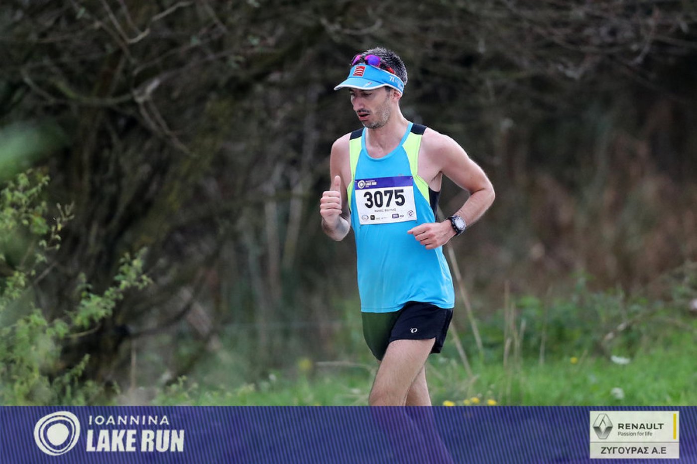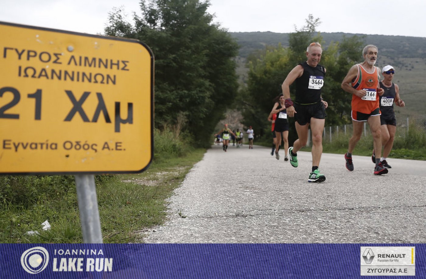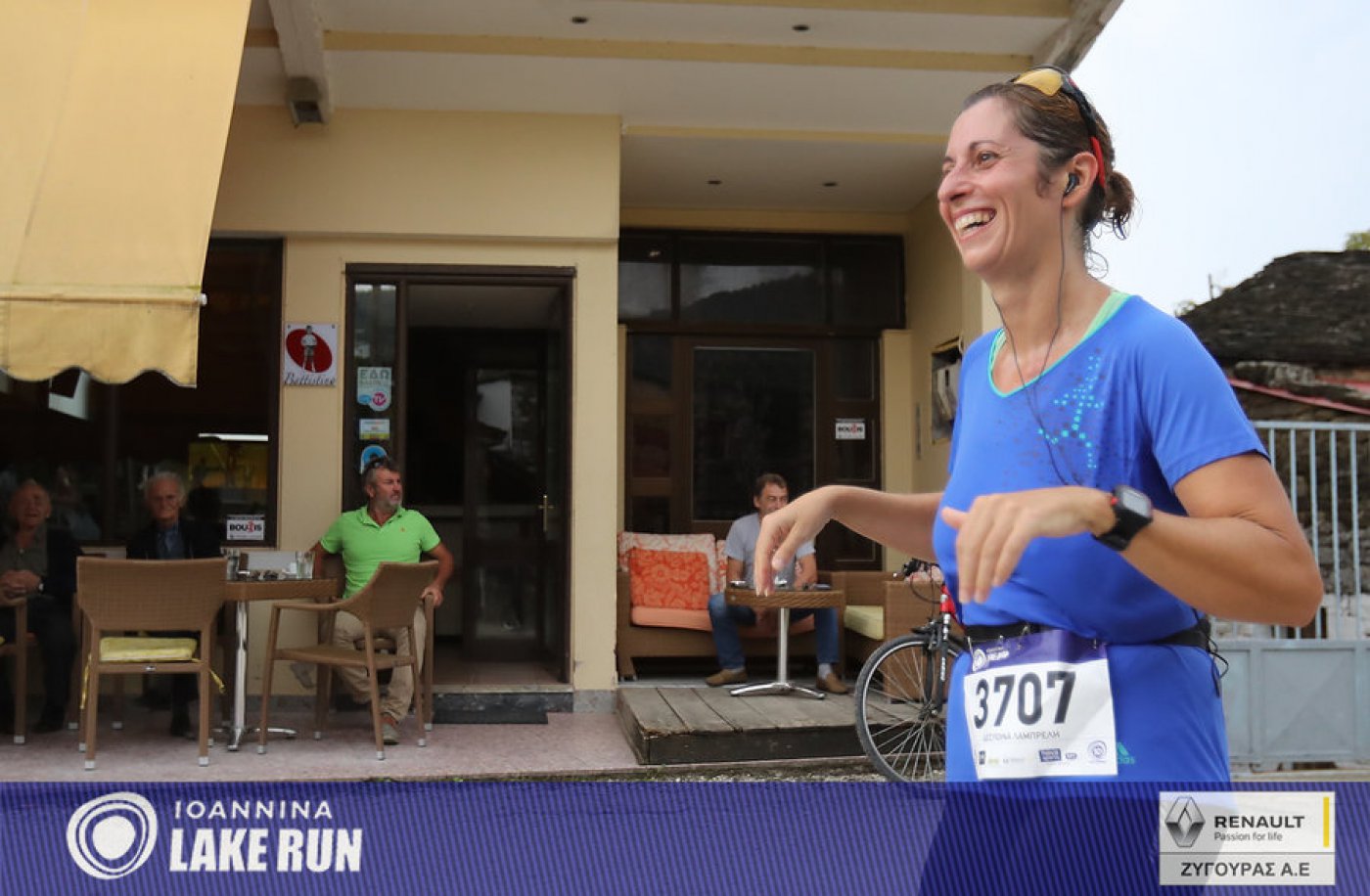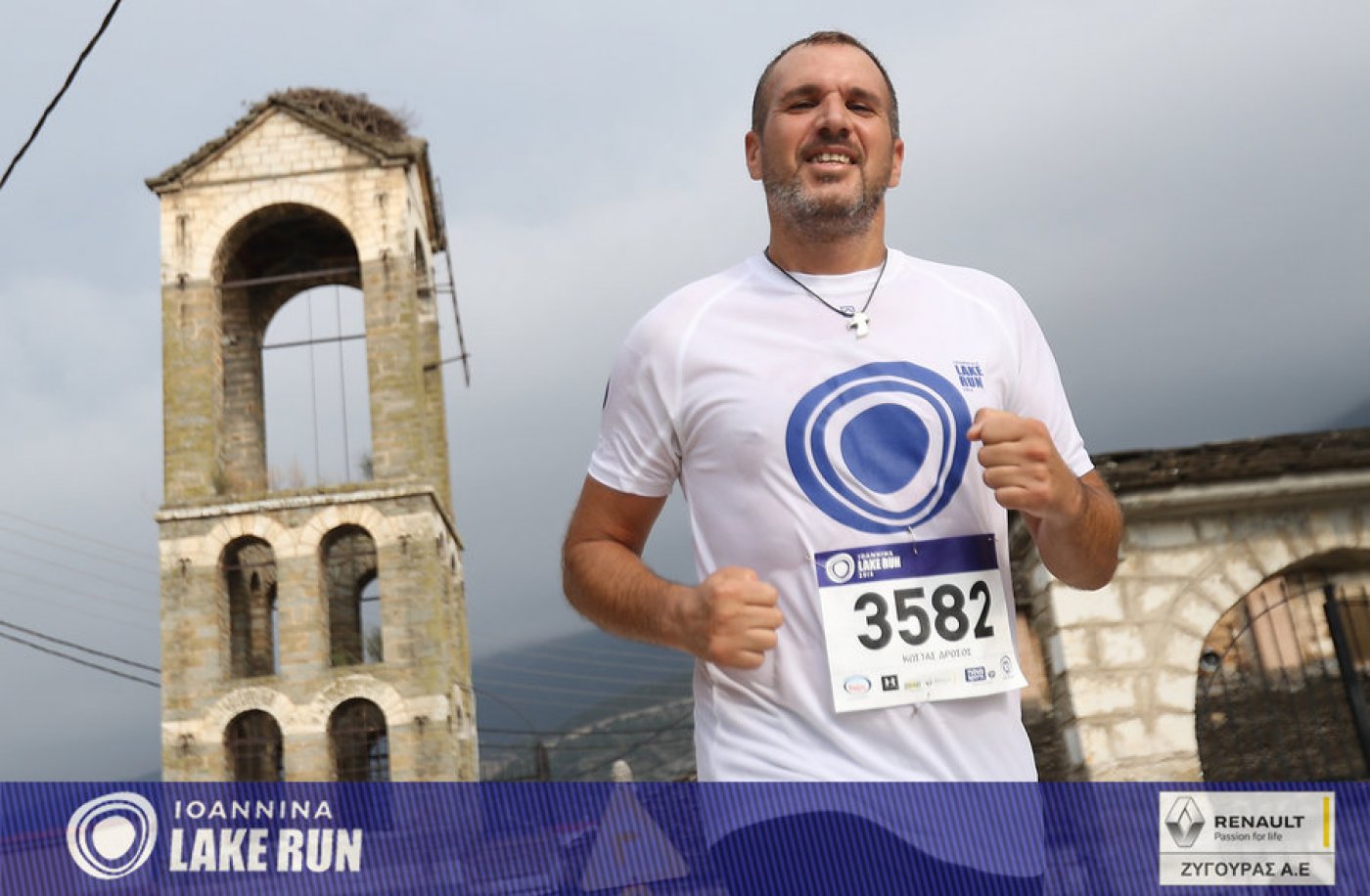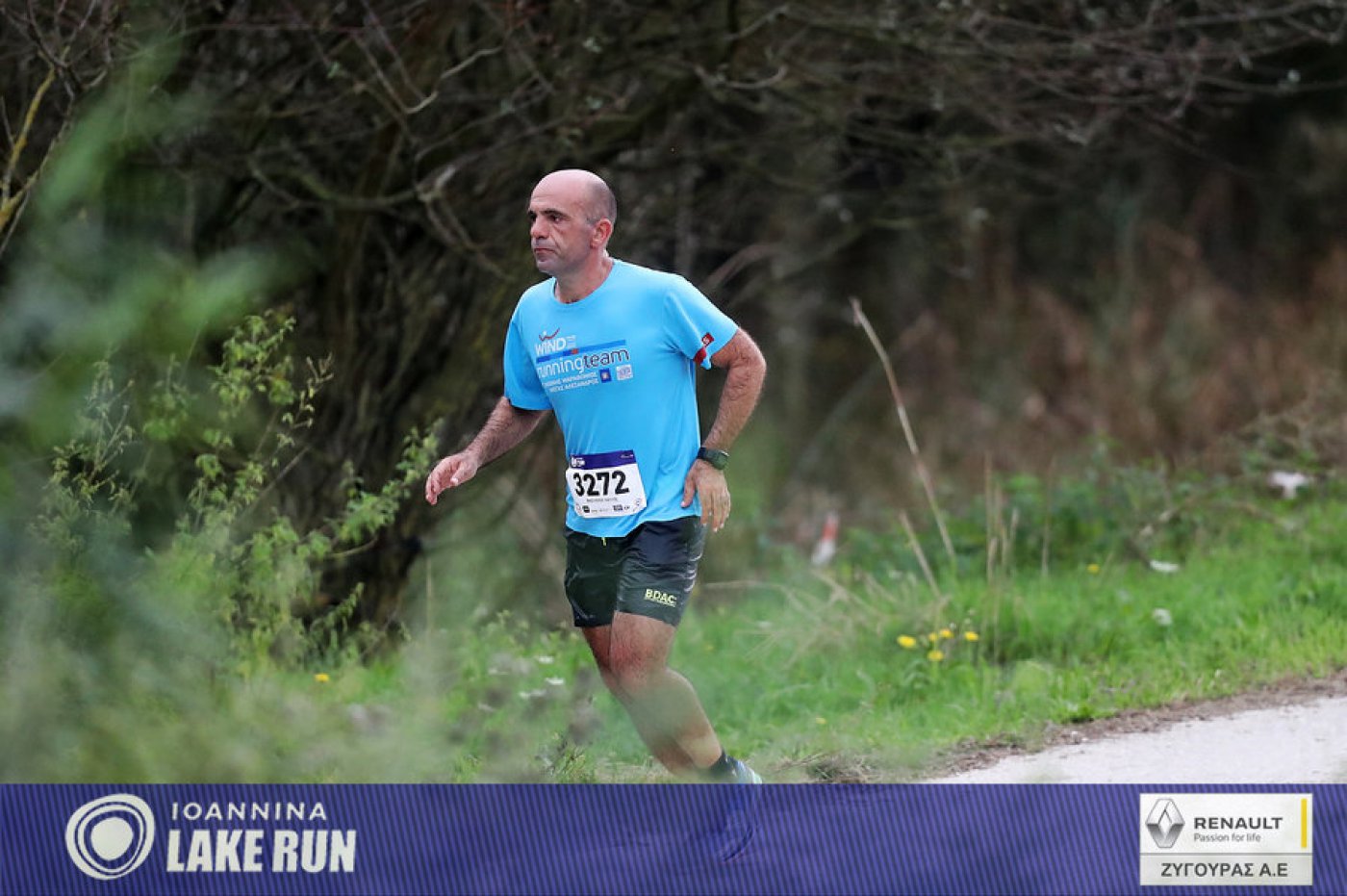 Το πέρασμα των δρομέων από τον παραλίμνιο οικισμό των Λογγάδων και το καμπαναριό της εκκλησίας της Κοίμησης της Θεοτόκου. Εικόνες από τη διαδρομή έξω από τα χωριά της Βασιλικής και της Κατσρίτσας έως την είσοδο στον παραλίμνιο πεζόδρομο-ποδηλατόδρομο.