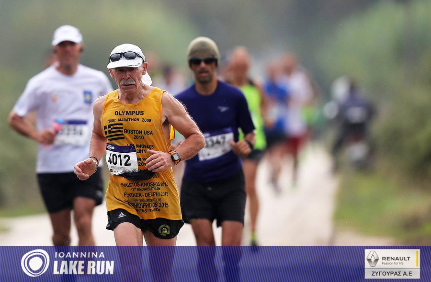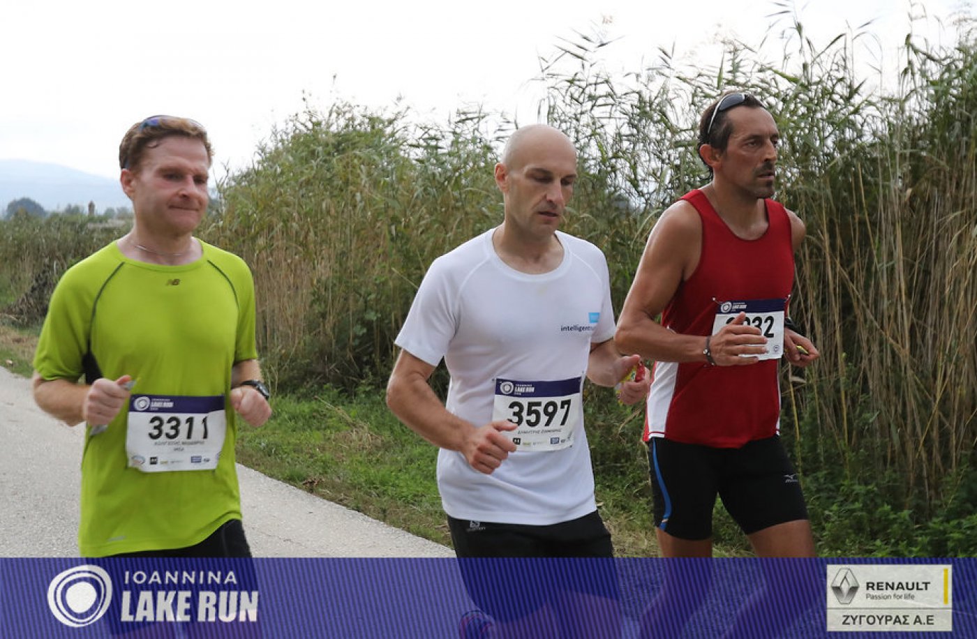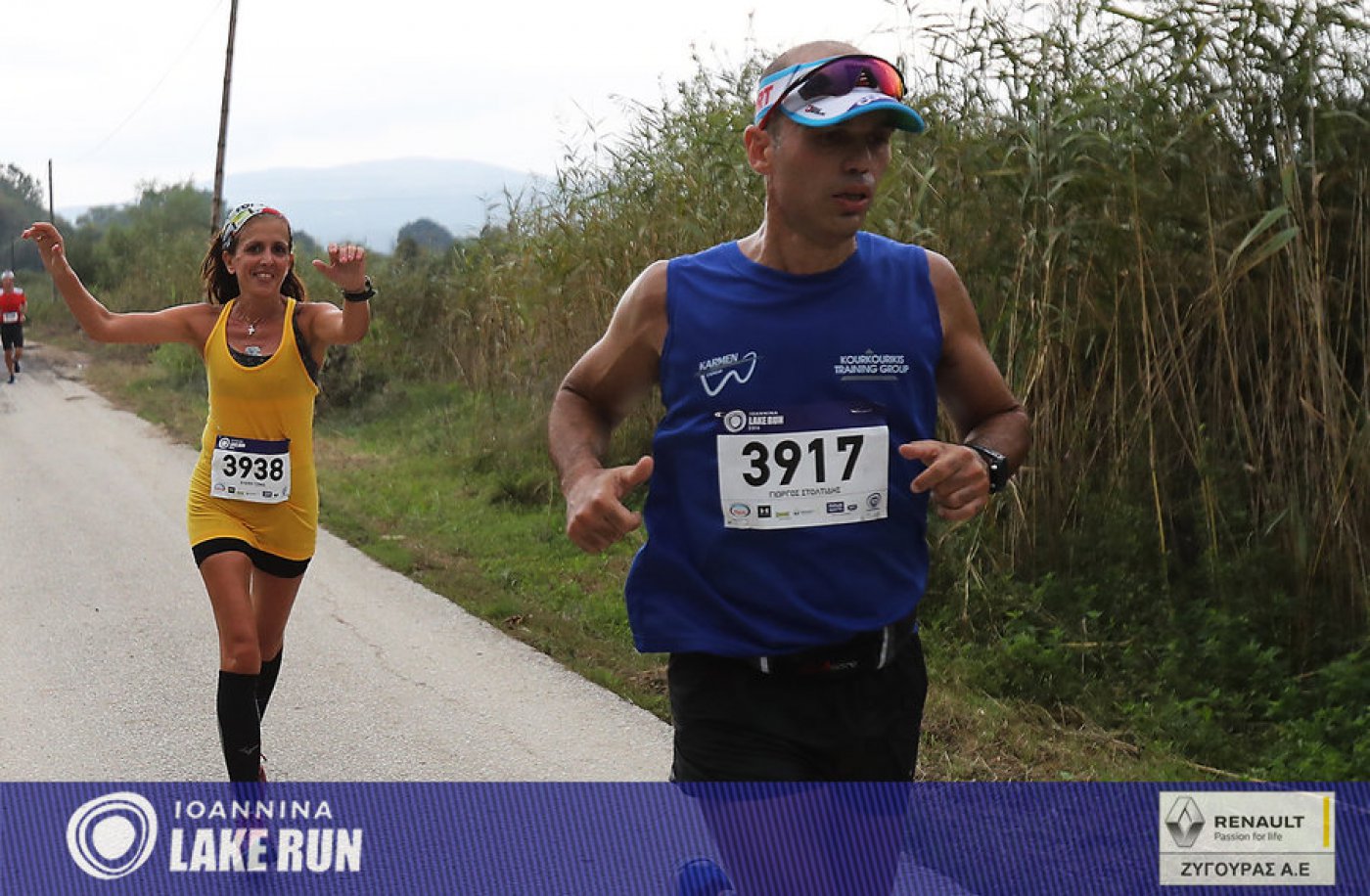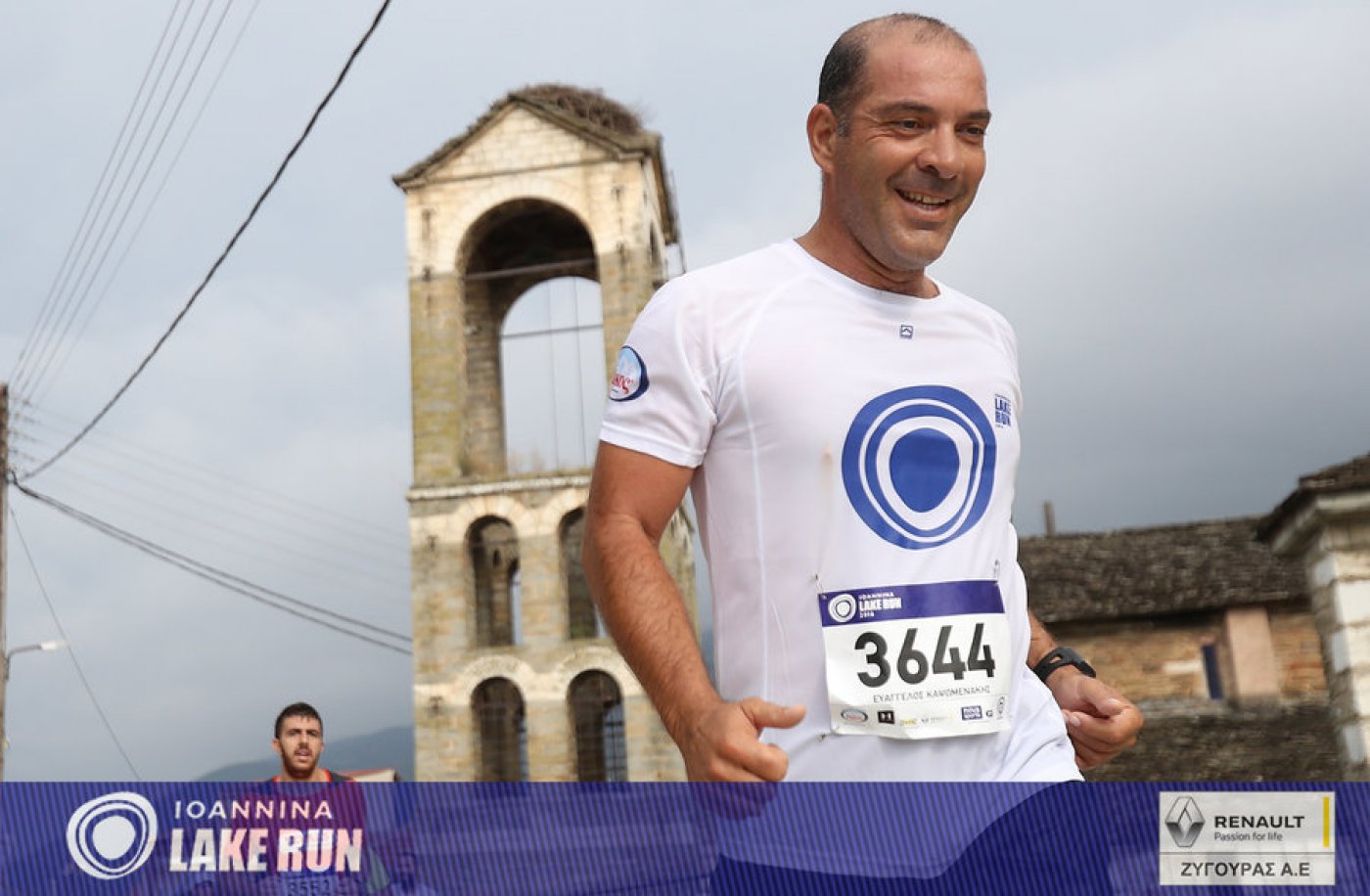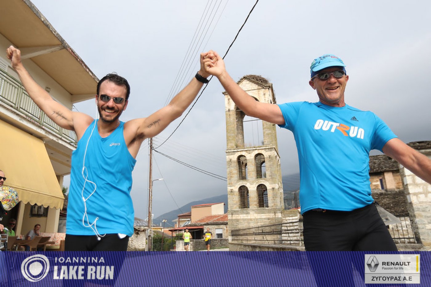 Το πέρασμα των δρομέων από τον παραλίμνιο οικισμό των Λογγάδων και το καμπαναριό της εκκλησίας της Κοίμησης της Θεοτόκου. Εικόνες από τη διαδρομή έξω από τα χωριά της Βασιλικής και της Κατσρίτσας έως την είσοδο στον παραλίμνιο πεζόδρομο-ποδηλατόδρομο.