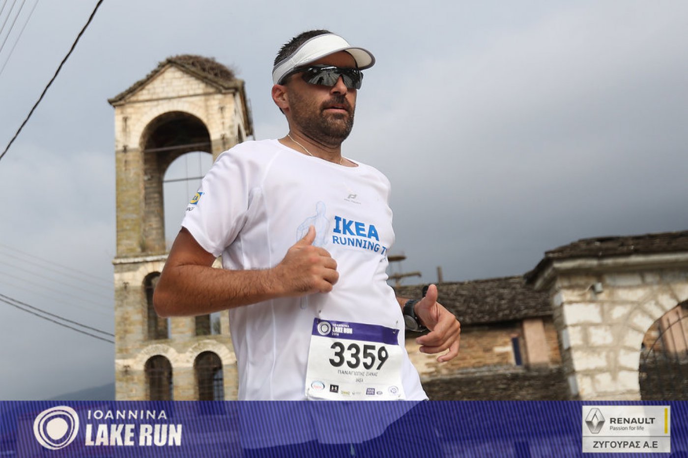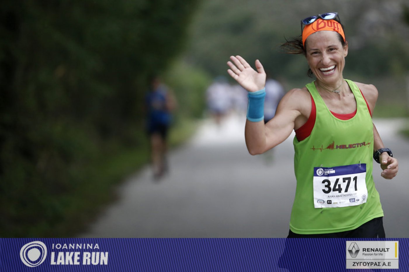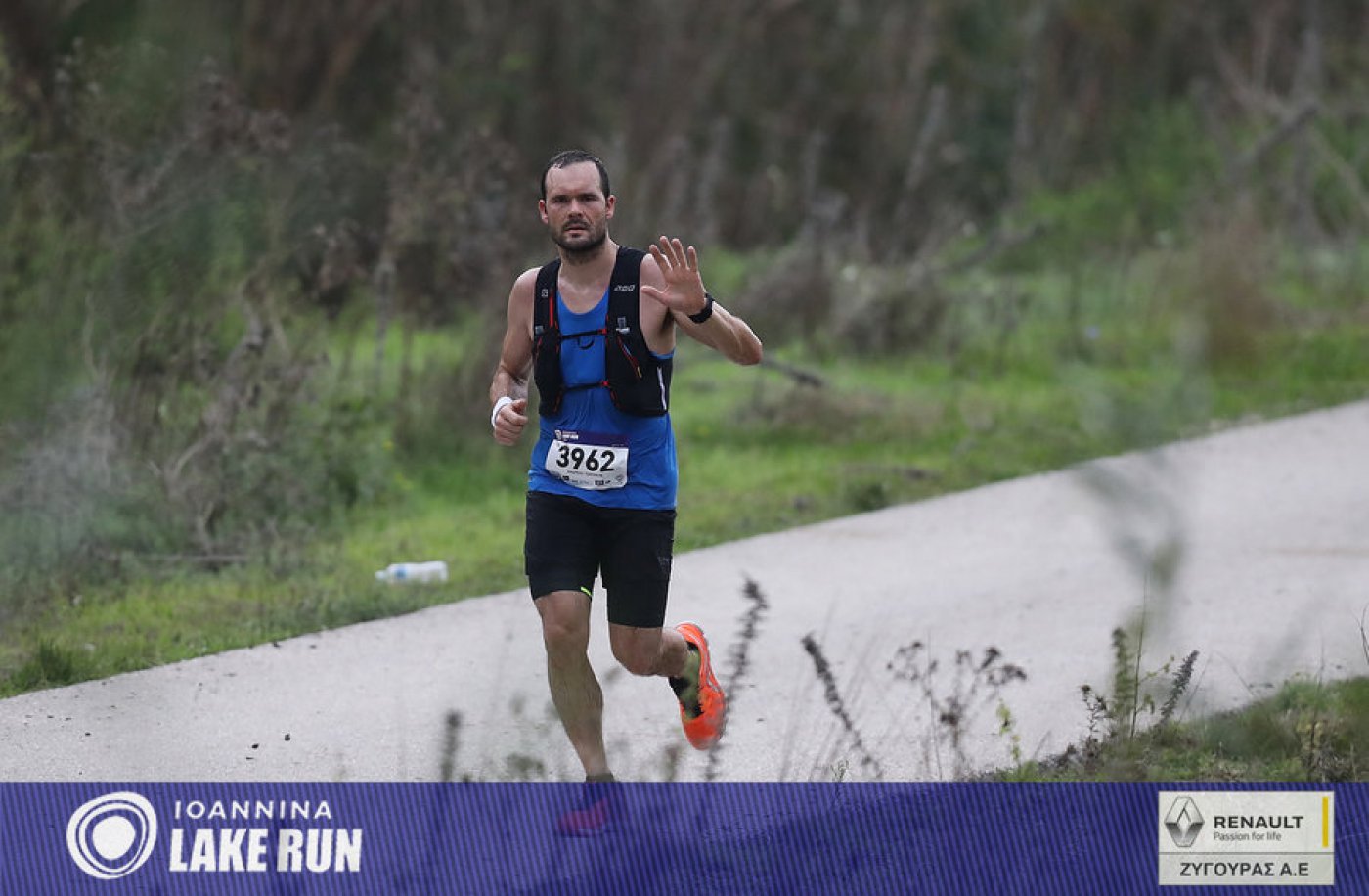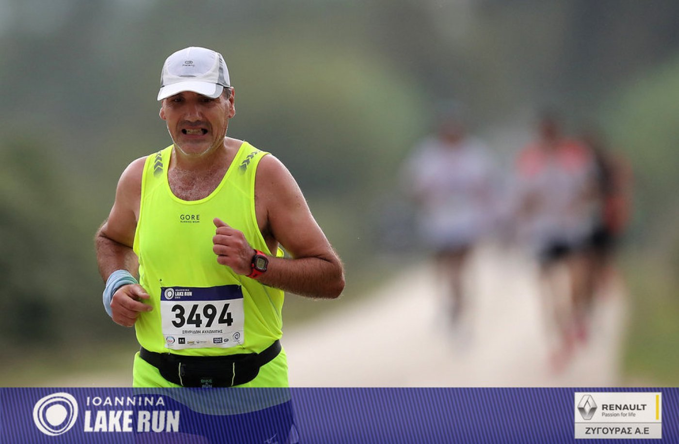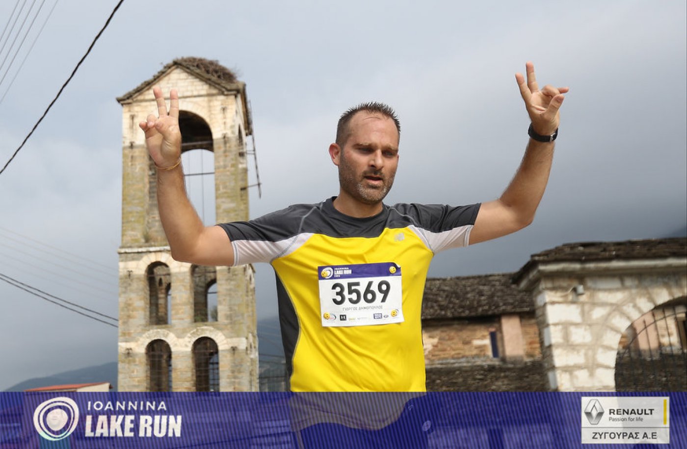 Το πέρασμα των δρομέων από τον παραλίμνιο οικισμό των Λογγάδων και το καμπαναριό της εκκλησίας της Κοίμησης της Θεοτόκου. Εικόνες από τη διαδρομή έξω από τα χωριά της Βασιλικής και της Κατσρίτσας έως την είσοδο στον παραλίμνιο πεζόδρομο-ποδηλατόδρομο.