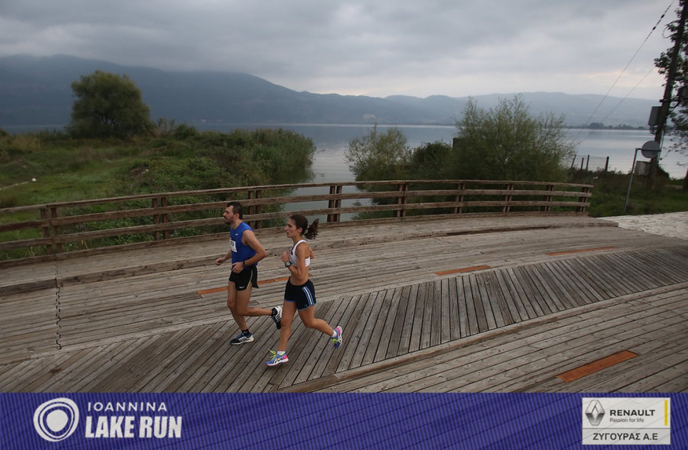 Η διαδρομή στον παραλίμνιο πεζόδρομο - ποδηλατόδρομο κάτω από τον Κατσικά και την Ανατολή, και το πέρασμα από τα τρία ξύλινα γεφυράκια.
