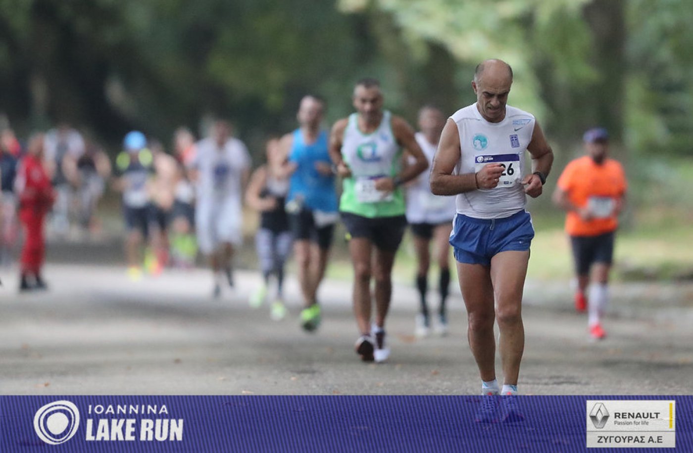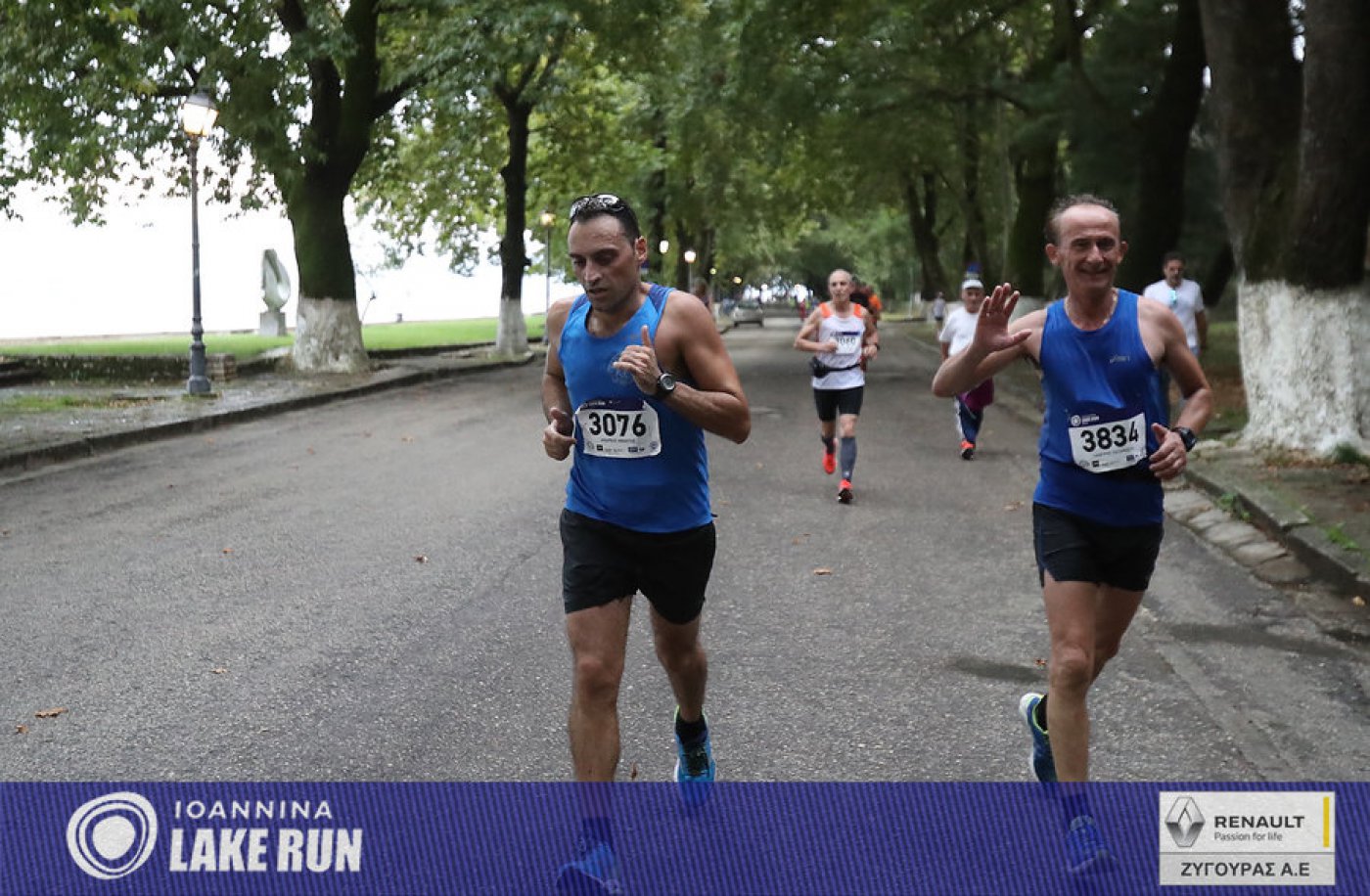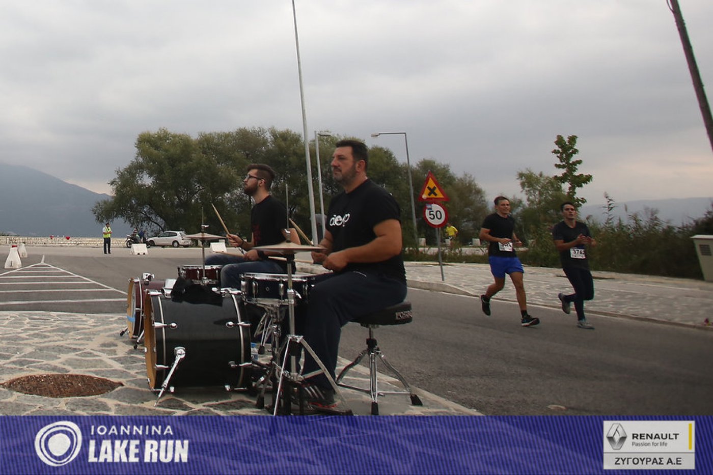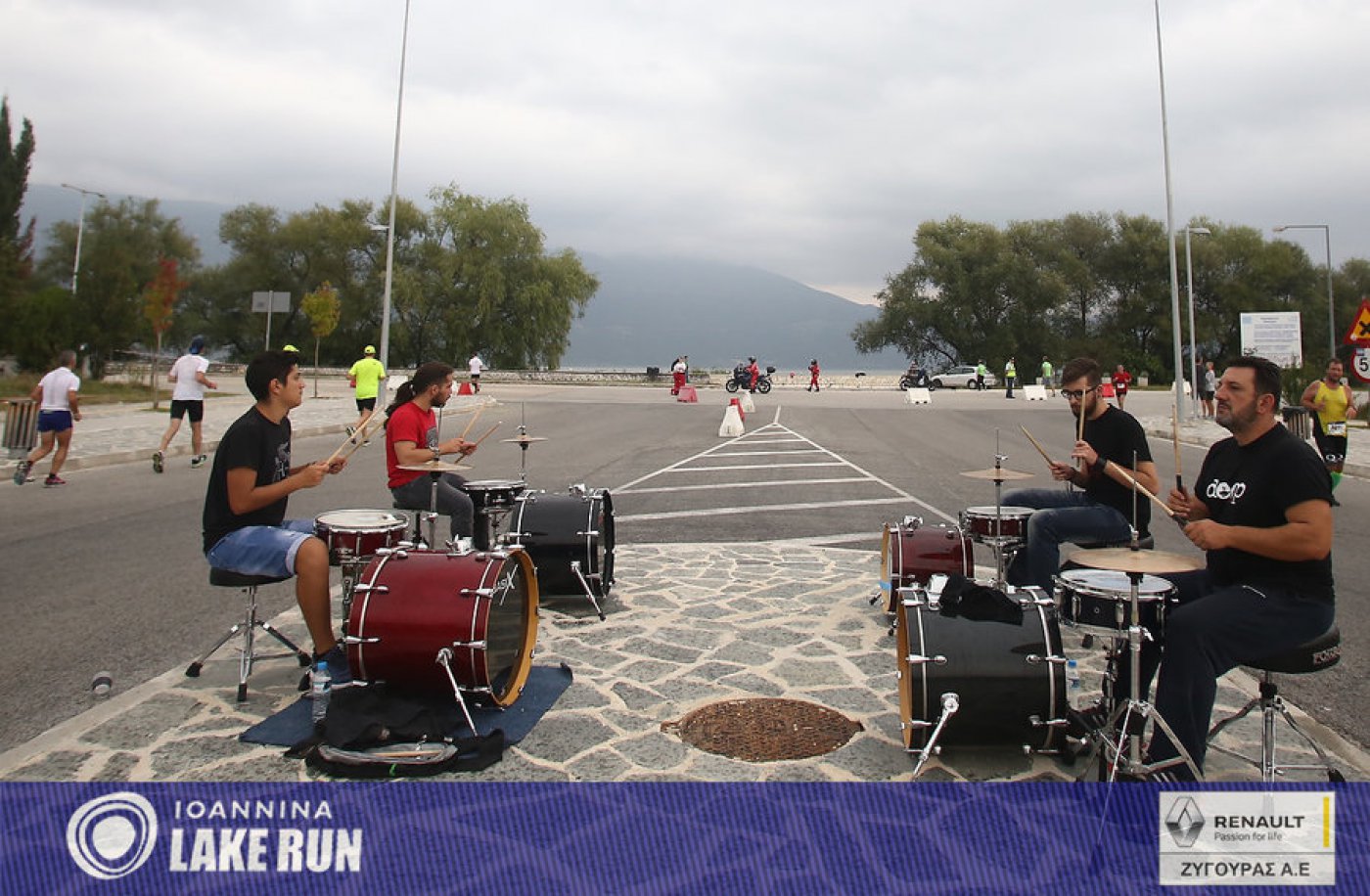 Υπό τους ήχους μιας μπάντας κρουστών του Ioannina School of Music μπήκαν στα τελευταία 5 χλμ. του Γύρου Λίμνης οι δρομείς, για να συνεχίσουν στην Ακτή Μιαούλη και στον παραλίμνιο δρόμο της Διονυσίου Φιλοσόφου, στη σκιά των υπεραιωνόβιων πλατάνων και των τειχών του Κάστρου.